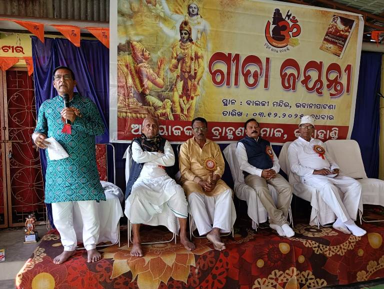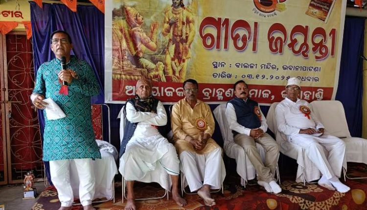 କଳାହାଣ୍ଡି, (ଶୁଭେନ୍ଦୁ କୁମାର ପଣ୍ଡା) : ସ୍ଥାନୀୟ ବାଲାଜୀ ମନ୍ଦିର ପରିସରରେ ବ୍ରାହ୍ମଣ ସମାଜ କଳାହାଣ୍ଡି ପକ୍ଷରୁ ଗୀତା ଜୟନ୍ତୀ ପାଳିତ ହୋଇଯାଇଛି । ଏହି ଉପଲକ୍ଷେ ଘୃତ ଯଜ୍ଞ, ଜ୍ଞାନ ଯଜ୍ଞ ଓ ଅନ୍ନ ଯଜ୍ଞ ଆୟୋଜିତ ହୋଇଥିଲା । ମନ୍ଦିରର ଯଜ୍ଞ ମଣ୍ଡପରେ ସକାଳ ସାଢେ଼ ସାତଟାରେ ଯଜ୍ଞାଚାର୍ଯ୍ୟ ଶରତ କୁମାର ମିଶ୍ର ଓ ନିରଞ୍ଜନ ଦାଶଙ୍କ ତତ୍ତ୍ୱାବଧାନରେ ଅନୁଷ୍ଠିତ ଗୀତା ଯଜ୍ଞରେ ହର୍ଷବର୍ଦ୍ଧନ ବେହେରା ସସ୍ତ୍ରିକ୍ ଯଜ୍ଞର କର୍ତ୍ତା ଦାୟିତ୍ଵ ସମ୍ପାଦନ କରିଥିଲେ । ଦିନ ୧୧ଟାରେ ମନ୍ଦିର ପରିସରରେ ଉପ ସଭାପତି ଗଜେନ୍ଦ୍ର ପ୍ରସାଦ ପାଢୀଙ୍କ ଅଧ୍ୟକ୍ଷତାରେ ଆୟୋଜିତ ଆଧ୍ୟାତ୍ମିକ ସଭାରେ ସମାଜସେବୀ ସୁଧାଂଶୁ ଶେଖର ନେଗୀ ମୁଖ୍ୟ ଅତିଥି ଭାବରେ ଯୋଗଦେଇଥିବା ବେଳେ ରମାକାନ୍ତ ପାଢ଼ୀ ମୁଖ୍ୟ ବକ୍ତା, ଜିଲ୍ଲା ସ୍ୱାସ୍ଥ୍ୟ ଅଧିକାରୀ ଡାକ୍ତର ନିହାରେନ୍ଦ୍ର ପଣ୍ଡା, ବିଶିଷ୍ଟ ଶିଳ୍ପୀ ପ୍ରଭାସ ଚନ୍ଦ୍ର ମିଶ୍ର ସମ୍ମାନୀତ ଅତିଥି ଭାବରେ ଯୋଗ ଦେଇଥିଲେ । ପ୍ରାରମ୍ଭରେ ଗୀତା ଗ୍ରନ୍ଥ ଓ ଭଗବାନ ଶ୍ରୀକୃଷ୍ଣଙ୍କ ପୂଜାର୍ଚ୍ଚନା ପରେ ଆୟୋଜିତ ସାମୁହିକ ଗୀତା ପଞ୍ଚଦଶ ଅଧ୍ୟାୟ ଆବୃତ୍ତି କାର୍ଯ୍ୟକ୍ରମରେ ୩୭ ଜଣ ପୁରୁଷ ମହିଳା ଗୀତା ଆବୃତ୍ତି କରିଥିଲେ । ଚଳିତ ବର୍ଷ ଚାରି ଜଣ ସମ୍ମାନିତ ଶିଶୁବକ୍ତା ଭାବରେ ଗୀତା ଉପରେ ଉପସ୍ଥାପନା କରିଥିଲେ । ଗୀତା ସମଗ୍ର ମାନବ ସମାଜ ପାଇଁ ଏକ ଅମୂଲ୍ୟ ଗ୍ରନ୍ଥ, ମାନବର ସମସ୍ତ ପ୍ରଶ୍ନର ଉତ୍ତର ଗୀତାରୁ ପାଇ ପାରିବେ । ଅବସାଦ ପରିଚାଳନାର ପୃଥିବୀର ଶ୍ରେଷ୍ଠ ଗ୍ରନ୍ଥ । ଏଣୁ ପ୍ରତିଦିନ ଗୀତା ପାଠ କରିବା ପାଇଁ ଅତିଥିମାନେ ଆହ୍ୱାନ କରିଥିଲେ । ଏହି ଅବସରରେ ନବ ନିଯୁକ୍ତ ବିଜେପି ରାଜ୍ୟ ଉପ ସଭାପତି ଭବେନ୍ଦ୍ର କୁମାର ପଣ୍ଡା, ଆଇଆଇଟିରେ ୯୯.୬୬ ଶତକଡା ରଖି ଦିଲ୍ଲୀ ଆଇଆଇଟିରେ ଅଧ୍ୟୟନରତ ଅଂଶୁମାନ ଠାକୁର ଓ ଶାଶ୍ଵତ ସଙ୍ଗୀତ ଶ୍ରୀମଦ୍ଭାଗବଦ୍ ଗୀତାର ଲେଖିକା ସ୍ନେହଲତା ଷଡ଼ଙ୍ଗୀଙ୍କୁ ସମ୍ବର୍ଦ୍ଧିତ କରାଯାଇଥିଲା । ବ୍ରାହ୍ମଣ ସମାଜର ସାଧାରଣ ସମ୍ପାଦକ ମଞ୍ଚ ପରିଚାଳନା କରିଥିଲେ ଓ ଗୋଲାମୁଣ୍ଡା ବ୍ଲକ ବ୍ରାହ୍ମଣ ସମାଜର ସମ୍ପାଦକ ପ୍ରତାପ ମୁଣ୍ଡ ଧନ୍ୟବାଦ ଅର୍ପଣ କରିଥିଲେ । ଜିଲ୍ଲା ସମ୍ପାଦକ ଉମେଶ ଚନ୍ଦ୍ର ପଣ୍ଡା, ନଗର ସମ୍ପାଦକ ଶେଷଦେବ ମିଶ୍ର, ପର୍ଶୁରାମ ସେନା ଜିଲ୍ଲା ସଂଯୋଜକ ପ୍ରଶାନ୍ତ ଠାକୁର, ସଭ୍ୟ ସନ୍ତୋଷ ଦାଶ, ଚକ୍ରଧର ଦାଶ, ଭୋଳାନାଥ ମିଶ୍ର, ପ୍ରଭାତ ବ୍ରହ୍ମା, ଅର୍ଚ୍ଚନା ମିଶ୍ର, ସୌଦାମିନୀ ପାଢ଼ୀ, ଅନୁପମା ମହାପାତ୍ର ପ୍ରମୁଖ କାର୍ଯ୍ୟକ୍ରମ ଆୟୋଜନରେ ସହଯୋଗ କରିଥିଲେ ।
