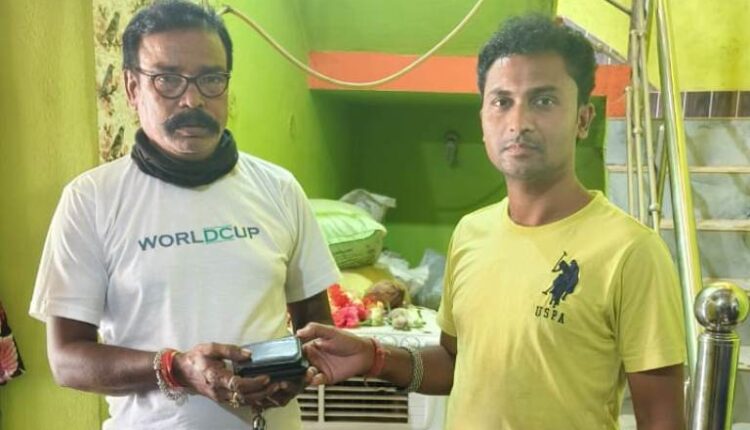ବରଗଡ଼, (କେପିଏନ୍ଏସ୍) : ଗତକାଲି ସନ୍ଧ୍ୟାରେ ବରଗଡ଼ ଗାନ୍ଧୀଛକ ପାଖରେ କଂସ ଅଭିନେତା ଭୁବନେଶ୍ୱର ପଧାନଙ୍କ ବଡ଼ ପୁଅ ଅଜିତ ପଧାନ ଗୋଟିଏ ମନିପର୍ସ ପାଇଥିଲେ । ଯେଉଁଥିରେ ୯୪୨୦ ଟଙ୍କା ଓ ଅନ୍ୟାନ୍ୟ ଗୁରୁତ୍ୱପୂର୍ଣ୍ଣ କାଗଜପତ୍ର ଥିଲା । ସେଥିରୁ ପରିଚୟ ପାଇ ବରଗଡ଼ ରେଲୱେ ଷ୍ଟେସନପଡାର କାନ୍ଦୁରା ମଲ୍ଲିକଙ୍କୁ ଯୋଗାଯୋଗ କରି ଆଜି ତାଙ୍କର ମନିପର୍ସ ଓ ସମସ୍ତ ଟଙ୍କାକୁ ଫେରାଇ ଦେଇଥିବା ଜଣାପଡ଼ିଛି ।