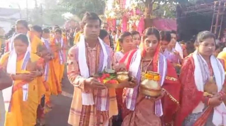 ବରଗଡ, (କେପିଏନ୍ଏସ୍) : ବରଗଡ଼ ଜିଲ୍ଲା ପଦ୍ମପୁର ବ୍ଲକ ଅଧୀନ ଖଇରପାଲି ଗ୍ରାମରେ ମାଁ ମହାଲକ୍ଷ୍ମୀଙ୍କ ୧୮ତମ ପୂଜନୋତ୍ସବ ମହା ଆଡମ୍ବର ସହିତ ପାଳନ ହୋଇଯାଇଛି । ଗ୍ରାମର ଶତାଧିକ ମହିଳା ହରିଦ୍ରା ବର୍ଣ୍ଣର ବସ୍ତ୍ର ଧାରଣ କରି କଳସ ଯାତ୍ରାରେ ଯୋଗଦାନ କରିଥିଲେ । କର୍ତ୍ତା ଭାବରେ ସନ୍ତୋଷ ମେହେର ଓ ତାଙ୍କ ଧର୍ମପତ୍ନୀ ରଶ୍ମିତା ମେହେର କାର୍ଯ୍ୟ ନିର୍ବାହ କରିଛନ୍ତି । ବିଭିନ୍ନ ସାଂସ୍କୃତିକ ବାଦ୍ୟ ତାଳେ ତାଳେ କଳସ ଶୋଭାଯାତ୍ରା ବାହାରିଥିଲା । ଏହି କଳସ ଶୋଭାଯାତ୍ରାରେ ସମ୍ବଲପୁରୀ ମହିଳା ରଙ୍ଗିନ ସଂକୀର୍ତ୍ତନ ଦଳ, ଆଦିବାସୀ ନୃତ୍ୟ ଦଳ, ଦାଣ୍ଡିଆ ନୃତ୍ୟ ଦଳ, ଘଣ୍ଟ ବାଦ୍ୟ ସହ ଖଇରପାଲି ଗ୍ରାମ ଉତ୍ସବ ମୁଖର ହୋଇପଡ଼ିଥିଲା । ଗୁରୁବାର ମାଁ ମହାଲକ୍ଷ୍ମୀ ପୂଜୋନତ୍ସବ ଓ ରାତ୍ରିରେ ପାରାୟଣ ଓ ପ୍ରବଚନ ହେବା ସହ ବିଭିନ୍ନ ସାଂସ୍କୃତିକ କାର୍ଯ୍ୟକ୍ରମ ହେବାର ପୂଜା କମିଟି ପକ୍ଷରୁ ସୂଚନା ଦିଆଯାଇଛି । ଶ୍ରଦ୍ଧାଳୁ ମାନଙ୍କ ପାଇଁ ଜଳଛତ୍ର ଏବଂ ଅନ୍ନ ପ୍ରସାଦ ଓ କ୍ଷୀରି, ଖେଚୁଡୀ ଭୋଗର ବ୍ୟବସ୍ଥା କରାଯାଇଛି । ଶନିବାର ଦିନ ପୂର୍ଣ୍ଣାହୁତି, ରବିବାର ଉଦ୍ଯାପନୀ, ସୋମବାର ମାଁ ମହାଲକ୍ଷ୍ମୀଙ୍କର ଭସାଣୀ ଯାତ୍ରା କରାଯିବାର ପୂଜା କମିଟି ପକ୍ଷରୁ ସୂଚନା ଦିଆଯାଇଛି ।