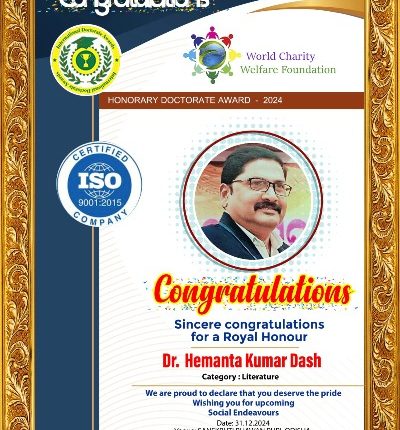 ତୁଷୁରା, (କେପିଏନ୍ଏସ୍) : ଆନ୍ତର୍ଜାତିକ ସ୍ତରର ଖ୍ୟାତି ସମ୍ପନ୍ନ ୟୁନିଭରସିଟି ଆମେରିକାନ୍ ମେରିଟ୍ କାଉନସିଲ୍, ଆମେରିକା ତରଫରୁ ସାହିତ୍ୟ କ୍ଷେତ୍ରରେ ଉଲ୍ଲେଖନୀୟ ଅବଦାନ ସକାଶେ ବଲାଙ୍ଗିର ଜିଲ୍ଲା ତୁଷୁରା ସହରର ବିଶିଷ୍ଟ ସାହିତ୍ୟିକ, ଶିକ୍ଷାବିତ, ସଂଗଠକ ତଥା ଆଦର୍ଶ ଶିକ୍ଷକ ଆଶୁକବି ହେମନ୍ତ ଦାଶ ପାଇବେ ଚଳିତ ବର୍ଷ ପାଇଁ ସମ୍ମାନଜନକ ଡକ୍ଟରେଟ ଉପାଧି । ୱାର୍ଲଡ ଚାରିଟି ୱେଲଫେୟାର ଫାଉଣ୍ଡେସନ, ନୂଆଦିଲ୍ଲୀ ତରଫରୁ ଶ୍ରୀ ଦାଶଙ୍କୁ ଉକ୍ତ ଉପାଧି ପାଇଁ ମନୋନୀତ କରାଯାଇଛି । ଆସନ୍ତା ୩୧ ଡିସେମ୍ବର ଦିନ ପୁରୀ ଟାଉନହଲ୍ ଠାରେ ଏକ ବର୍ଣ୍ଣାଢ଼୍ୟ ସମାରୋହରେ ଉକ୍ତ ସମ୍ମାନ ପ୍ରଦାନ କରାଯିବାକୁ ଏକ ପତ୍ର ମାଧ୍ୟମରେ ଶ୍ରୀ ଦାଶଙ୍କୁ ଜଣାଇ ଦିଆଯାଇଛି । ଶ୍ରୀ ଦାଶ ଏକାଧାରରେ ଜଣେ ଆଦର୍ଶ ଶିକ୍ଷକ, ସୁସାହିତ୍ୟିକ, ଲେଖକ, କବି, ଗାଳ୍ପିକ ତଥା ଜଣେ ସୁସଂଗଠକ ଭାବେ ସମଗ୍ର ଓଡ଼ିଶାରେ ପରିଚିତ । ତାଙ୍କର ଲେଖାଗୁଡିକ ଓଡ଼ିଶାର ବିଭିନ୍ନ ଖବରକାଗଜ, ପତ୍ରପତ୍ରିକାରେ ଓ ବିଭିନ୍ନ ପୁସ୍ତକଗୁଡ଼ିକରେ ପ୍ରକାଶିତ ହୋଇସାରିଛି । ସେ ନିଷାନ ସାହିତ୍ୟ ସଂସଦ ତୁଷୁରା, ବଲାଙ୍ଗିରର ପ୍ରତିଷ୍ଠାତା ସଂପାଦକ ହେବା ସହ ସମ୍ବାଦ ସାହିତ୍ୟ ଘର ଗୁଡଭେଲା ଓ ବିଧୁଭୁଷଣ ସାହିତ୍ୟ ସଂସଦ ତୁଷୁରାର ସଂପାଦକ, ରାଷ୍ଟ୍ରୀୟ କବି ସଂଗମ ବଲାଙ୍ଗିର ଜିଲ୍ଲାର ସଂଯୋଜକ, ଜ୍ଞାନ ପ୍ରକାଶର ଜିଲ୍ଲା ମୁଖ୍ୟ, ଶ୍ରୀଚନ୍ଦନ ସାହିତ୍ୟ ସଂସ୍କୃତି ଏକାଡେ଼ମୀ କଟକର ସଂଗଠନ ସଂପାଦକ ହୋଇ ନିରବଚ୍ଛିନ୍ନ ଭାବେ ଭାଷା ସାହିତ୍ୟର ସେବା କରି ଆସୁଛନ୍ତି । ତାଙ୍କର ଫେସବୁକ ଏକପଦି ସଂକଳନ ‘ଭାବର୍ ମହକ’ ପାଠକଙ୍କ ମନକୁ ଖୁବ୍ ଛୁଇଁ ପାରିଛି । ଶ୍ରୀ ଦାଶଙ୍କୁ ସମ୍ମାନଜନକ ଡକ୍ଟରେଟ ଉପାଧି ମିଳୁଥିବା ଜାଣି ତାଙ୍କର ପ୍ରଶଂସକଙ୍କ ମଧ୍ୟରେ ଖୁସିର ଲହରୀ ଖେଳିଯାଇଛି ।