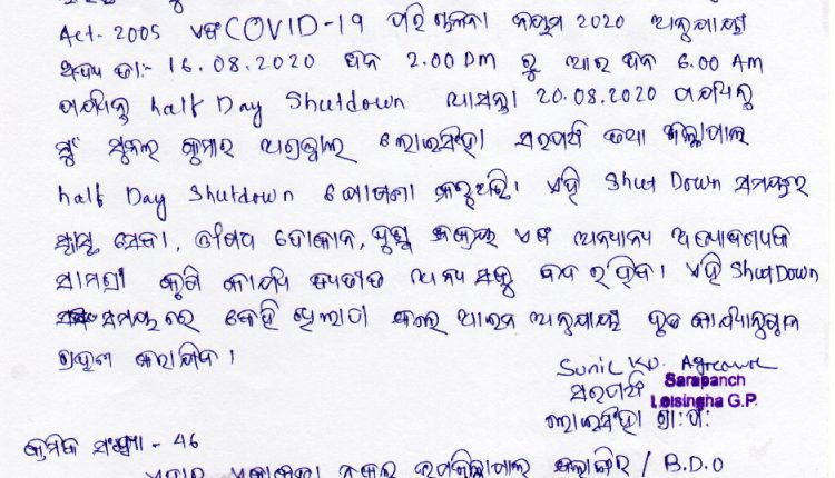 ଲୋଇସିଂହା, (ବିମଳେନ୍ଦୁ ସାହୁ) : ବଲାଙ୍ଗିର ଜିଲା ଲୋଇସିଂହା ସ୍ଥିତ ନୂଆପଡାଠାରେ ଶନିବାର ଆଠ ଜଣ କୋଭିଡ ଆକ୍ରାନ୍ତ ଚିହ୍ନଟ ହେବା ପରେ ନୂଆପଡା ଏରିଆକୁ କଣ୍ଟେନମେଣ୍ଟ ଜୋନ ଭାବେ ଘୋଷଣା କରାଯାଇଛି । ଏହି ଅଂଚଳରେ ସମସ୍ତ ପ୍ରକାର ଗମନାଗମନକୁ ନିଷିଦ୍ଧ କରାଯାଇଛି । ଏଥିସହିତ ଲୋଇସିଂହା ପଂଚାୟତ କାର୍ୟ୍ୟାଳୟ ପତ୍ର ନଂ-୪୫/ତା.୧୬/୦୮/୨୦୨୦ ଅନୁଯାୟୀ ଅତ୍ୟାବଶ୍ୟକୀୟ ସେବା ବ୍ୟତୀତ ସହରର ସମସ୍ତ ଦୋକାନ ବଜାର ଓ ବ୍ୟବସାୟିକ ପ୍ରତିଷ୍ଠାନ ୧୬ ତାରିଖ ଅପରାହ୍ନ ୨ଟା ରୁ ୨୦ ତାରିଖ ସକାଳ ୬ଟା ପର୍ୟ୍ୟନ୍ତ ବନ୍ଦ ରହିବ ବୋଲି ସରପଞ୍ଚ ସୁନୀଲ ଅଗ୍ରୱାଲ ଘୋଷଣା କରିଛନ୍ତି । କରୋନା ମହାମାରୀକୁ ପ୍ରତିହତ କରିବା ଉଦ୍ଦେଶ୍ୟରେ ଏହି ଘୋଷଣା କରାଯିବା ସହିତ ଏହାକୁ ଅମାନ୍ୟ କଲେ ଆଇନ ଅନୁଯାୟୀ କାର୍ୟ୍ୟାନୁଷ୍ଠାନ ଗ୍ରହଣ କରାଯିବ ବୋଲି ସରପଞ୍ଚ ଶ୍ରୀ ଅଗ୍ରୱାଲ ସୂଚନା ଦେଇଛନ୍ତି ।