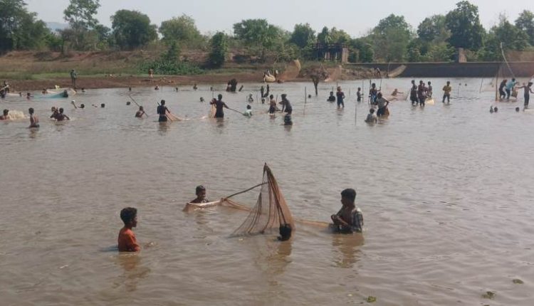 ଖପ୍ରାଖୋଲ, (ଅଶୋକ କୁମାର ବାଗ) : ପଶ୍ଚିମ ଓଡିଶାରେ ଦେଖିବାକୁ ମିଳିଛି ନିଆରା ଢଙ୍ଗରେ ଲୋକ ମାନଙ୍କ ମାଛ ଧରିବାର ମଜା ଯାହାକୁ ଗାଁ ମାରେନ କହିଥାନ୍ତି । ଏହି ପ୍ରଥା ବହୁ ବର୍ଷ ତଳେ ଚାଲୁଥିଲା, ଠିକା ନେଇଥିବା ବ୍ୟକ୍ତି ମାଛ ଧରି ସାରିବା ପରେ, ପଙ୍କ ତଳ ଉପର ପାଇଁ ସାମୁହିକ ମାଛ ଧରା ବା ଗାଁ ମାରେନ କରୁଥିଲେ । ବଲାଙ୍ଗିର ଜିଲ୍ଲା ଖପ୍ରାଖୋଲ ବ୍ଲକର ଡୁଡୁକିପଦର ଗ୍ରାମର ସୁଖାଜୋର ଡେମରେ ଅଞ୍ଚଳବାସୀ ଦୀର୍ଘ ୮ ବର୍ଷ ପରେ ଆଜି ସାମୁହିକ ମାଛ ଧରିଥିବା ଖବର ଜଣାପଡିଛି । ଖପ୍ରାଖୋଲ କ୍ଷୁଦ୍ରତମ ଜଳ ସେଚନ ବିଭାଗ ତରଫରୁ ବିଗତ ୨୫ ବର୍ଷ ତଳେ ସୁଖାଜୋର ନାଲାରେ ପାଖାପାଖି ଦୁଇ କୋଟି ଟଙ୍କାରେ ଏକ ଡ଼ାଇଭାର୍ସନ ଡେମ ନିର୍ମାଣ ହୋଇଥିଲା । ସେତେବେଳେ ପ୍ରତିବର୍ଷ ମରୁଡି ଲାଗି ରହୁଥିବାରୁ, ଚାଷୀ ମାନଙ୍କ ସହାୟକ ଉଦ୍ଦେଶ୍ୟରେ ଏହି ଡେମ ହୋଇଥିଲା ବ୍ଲକର ତେଲେନପାଲି, ରେଙ୍ଗାଲି, ଘୁନସର, ମହରାପଦର, ଓଡ଼ିଆପାଲି, ନାନ୍ଦୁପଲା, ଭାନପୁର, ମାଟିଆଭଟା, ଧଣ୍ଡାମୁଣ୍ଡା ପଞ୍ଚାୟତର ବହୁ ଲୋକ ସାମିଲ ହୋଇ ଆନନ୍ଦର ସହ ଅପରାହ୍ନ ତିନିଟା ପର୍ଯ୍ୟନ୍ତ ମାଛ ଧରି ଥିବା ଜଣାପଡିଛି ।