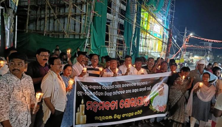 ଜାମ୍ମୁ କାଶ୍ମୀରର ପହଲଗାମରେ ଆତଙ୍କବାଦୀ ଆକ୍ରମଣରେ ମୃତ୍ୟୁବରଣ କରିଥିବା ୨୬ ଜଣ ନୀରିହ ପର୍ଯ୍ୟଟକ ମୟୁରଭଞ୍ଜ ଜିଲ୍ଲା ତରଫରୁ ଏକ ମହମବତୀ ଶୋଭାଯାତ୍ରା