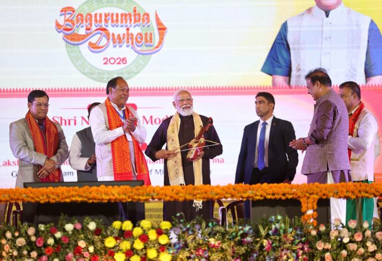 ପ୍ରଧାନମନ୍ତ୍ରୀ ବୋଡୋ ସମ୍ପ୍ରଦାୟର ସମୃଦ୍ଧ ଐତିହ୍ୟକୁ ପାଳନ କରିବା ପାଇଁ ଗୌହାଟୀର ସରୁସାଜାଇ ଷ୍ଟାଡିୟମରେ ଆୟୋଜିତ ଏକ ଐତିହାସିକ ସାଂସ୍କୃତିକ କାର୍ଯ୍ୟକ୍ରମ “ବାଗୁରୁମ୍ବା ଡାହୌ ୨୦୨୬”ରେ ଯୋଗ ଦେଇଥିଲେ ।