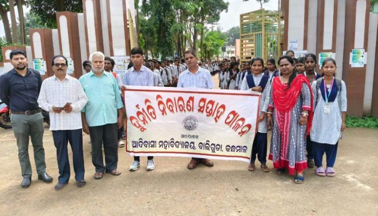 ବାଲିଗୁଡା, (ସଞ୍ଜୟ କୁମାର ପାଣିଗ୍ରାହୀ) : କନ୍ଧମାଳ ଜିଲ୍ଲା ବାଲିଗୁଡା ସ୍ଥିତ ଆଦିବାସୀ ମହାବିଦ୍ୟାଳୟ ପରିସରରେ ଦୁର୍ନୀତି ନିବାରଣ ସଚେତନତା ପଦଯାତ୍ରା ଅନୁଷ୍ଠିତ ହୋଇଯାଇଛି । ଏଥିରେ ଭାରପ୍ରାପ୍ତ ଅଧ୍ୟକ୍ଷ ଡ. ବିଭୂତି ଭୂଷଣ ଆଚାର୍ଯ୍ୟ, ଯୁବ ରେଡକ୍ରସ୍ କାଉନସେଲର ମାନସ ରଂଜନ ପ୍ରଧାନ, ଜାତୀୟ ସେବା ଯୋଜନା ଅଧିକାରୀ ଶ୍ରୀମତୀ ଅରୁନ୍ଧତୀ ପ୍ରଧାନ, ଅଧ୍ୟାପକ ଅବିନାଶ ମହାପାତ୍ରଙ୍କ ସମେତ ମହାବିଦ୍ୟାଳୟର ୫୦୦ରୁ ଅଧିକ ଛାତ୍ରଛାତ୍ରୀ ଉପସ୍ଥିତ ରହି ମହାବିଦ୍ୟାଳୟରୁ ବାହାରି ସମଗ୍ର ସହର ପରିକ୍ରମା କରି ଦୁର୍ନୀତିମୁକ୍ତ ସମାଜ ଗଠନ ସକାଶେ ଆହ୍ୱାନ ସମ୍ପର୍କିତ ବିଭିନ୍ନ ସ୍ଲୋଗାନ ମାନ ଦେଇଥିଲେ । ଏହି ସମୟରେ ସ୍ଥାନୀୟ ପୋଲିସ ବିଭାଗ ପକ୍ଷରୁ ଶାନ୍ତିଶୃଙ୍ଖଳା ବ୍ୟବସ୍ଥା ଗ୍ରହଣ କରାଯାଇଥିଲା ।