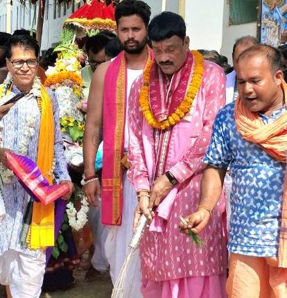 ପଦ୍ମପୁର, (ନିରୋଜ କୁମାର ପାଣୀ) : ପଶ୍ଚିମ ଓଡ଼ିଶାର ପ୍ରସିଦ୍ଧ ତୀର୍ଥକ୍ଷେତ୍ର ଶ୍ରୀ ନୃସିଂହନାଥ ମନ୍ଦିରରେ ରବିବାର ଭକ୍ତ ମାନଙ୍କର ପ୍ରବଳ ଭିଡ ହୋଇଥିଲା । ତିନି ଠାକୁର ମାନଙ୍କୁ ବ୍ରଜ୍ଝହ୍ମଣ ସମାଜର କର୍ମକର୍ତ୍ତା ମାନେ ନୂତନ ବସ୍ତ୍ର ପିନ୍ଧାଇ ବେଶଭୁଷା କରି ଫୁଲ ଚନ୍ଦନ ତୁଳସୀ ମାଳା ସହ ସୁନ୍ଦର ସାଜସଜ୍ଜା କରିଥିଲେ । ପୁଜା ପାଠ ନୈବେଦ୍ୟ ଅର୍ପଣ, ଆଳତି କରିପହଣ୍ଡିରେ ଠାକୁର ମାନଙ୍କୁ ରଥକୁ ଅଣାଯାଇଥିଲା । ବରଗଡ ସାଂସଦ ପ୍ରଦୀପ ପୁରୋହିତ ଛେରା ପହରା କରିଥିଲେ । ନୃସିଂହନାଥରୁ ଦୀର୍ଘ ୪ କିମି ରାସ୍ତାରେ ତିନି ଠାକୁରଙ୍କୁ ରଥରେ ବସାଇ ଟାଣି ଟାଣି ସଂନ୍ଧ୍ୟାରେ ପାଇକମାଲ ସ୍ଥିତ ମାଉସୀ ମା’ ମନ୍ଦିରକୁ ଅଣାଯାଇଛି । ଗରମ କମି ଯାଇଥିବାରୁ ଆଜି ଅପରାହ୍ନରେ ବହୁ ସଂଖ୍ୟରେ ଭକ୍ତମାନେ ରଥଯାତ୍ରାରେ ଯୋଗ ଦେଇଥିଲେ । ନୃସିଂହନାଥ ଅପରାହ୍ନ ୩ଟାରେ ବାହାରି ପାଇକମାଲକୁ ଦୁର୍ଗାପାଲି, ଦଣ୍ଡପାଟ ଓ ଜର୍ଜଗଡ଼, ନରସିଂହପଡା ଆଦି ଗ୍ରାମ ଦେଇ ରାସ୍ତା କଡ ମାନଙ୍କରେ ବିଭିନ୍ନ ଝୋଟି ଅଙ୍କାଯାଇ ପୂର୍ଣ୍ଣ କଳସରେ ପାଣି ରଖି ତିନି ଠାକୁର ଭକ୍ତ ମାନଙ୍କୁ ଦର୍ଶନ ଦେଇଥିଲେ ଓ ଶିଶୁମାନଙ୍କୁ ରଥ ଛୁଆଁ ଯାଉଥିଲା । ସଂନ୍ଧ୍ୟା ୭ଟାରେ ତିନି ଠାକୁର ମାଉସୀ ମା’ ମନ୍ଦିର ବିଜେ ହୋଇଛନ୍ତି । ରାସ୍ତାର ବିଭିନ୍ନ ସ୍ଥାନରେ ବିଭିନ୍ନ ଅନୁଷ୍ଠାନ ଓ ବ୍ୟକ୍ତି ବିଶେଷ ତରଫରୁ ମଧୁର ପାନୀୟ ଜଳର ବ୍ୟବସ୍ଥା କରାଯାଇଥିଲା । ରଥଯାତ୍ରା ପାଇଁ ଆଜି ନୃସିଂହନାଥଙ୍କ ମନ୍ଦିରରେ ସମସ୍ତ ପ୍ରକାର ନୀତିକାନ୍ତି ସମୟ ମୁତାବକ ସେବାୟତ ତଥା ଭକ୍ତଙ୍କର ଦ୍ୱାରା ସମ୍ପାଦନ କରାଯାଇଥିଲା । ଏଥର ରଥଯାତ୍ରାରେ ବହୁତ ଭକ୍ତ ଏକତ୍ରିତ ହୋଇଥିବାବେଳେ ପାଞ୍ଚ ଗୋଟି ସଂକୀର୍ତ୍ତନ ମଣ୍ଡଳୀ ମଧ୍ୟ ସାମିଲ ହୋଇଥିଲେ ଓ ବହୁତ ସୁନ୍ଦର ଭାବରେ ରଥ ଟଣା ଆରମ୍ଭ ହୋଇଥିଲା ବୋଲି ନୃସିଂହନାଥ ମନ୍ଦିର କାର୍ଯ୍ୟନିର୍ବାହୀ ଅଧିକାରୀ ପୁରୁଷୋତ୍ତମ ପ୍ରଧାନ ସୂଚନା ଦେଇଛନ୍ତି ।
