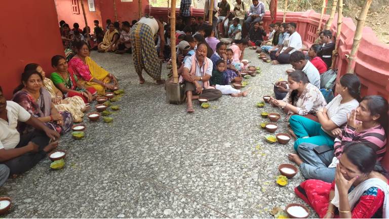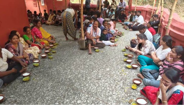 ପଦ୍ମପୁର, (ନିରୋଜ କୁମାର ପାଣୀ) : ବୈଶାଖ ମାସରେ ପ୍ରଚଣ୍ଡ ରୌଦ୍ରତାପ ଯୋଗୁଁ ବରଗଡ ଜିଲ୍ଲା ପାଇକମାଳ ବ୍ଲକ୍ ନୃସିଂହନାଥ ପୀଠରେ ପ୍ରତିବର୍ଷ ପରି ଚଳିତ ବର୍ଷ ପ୍ରଭୁ ନୃସିଂହନାଥଙ୍କ ଠାରେ ସୋମବାର ପଖାଳ ଭୋଗ ଲାଗି ହେବା ସହ ଭକ୍ତଙ୍କୁ ଅର୍ପଣ କରାଯାଇଛି । ଏହି ପ୍ରାଚୀନ ନୃସିଂହନାଥ ମନ୍ଦିରରେ ପୂଜା ପାଉଛନ୍ତି ଭଗବାନ ବିଷ୍ଣୁଙ୍କର ଅନ୍ୟତମ ସ୍ୱରୁପ ମାର୍ଜାରକେଶରୀ । ବୈଶାଖ ମାସର ପ୍ରଚଣ୍ଡ ରୌଦ୍ରତାପ ଯୋଗୁଁ ମହାପ୍ରଭୁ ନୃସିଂହନାଥଙ୍କ ସ୍ୱତନ୍ତ୍ର ବ୍ୟବସ୍ଥା କରାଯାଇଛି । ମହାପ୍ରଭୁ ନୃସିଂହନାଥଙ୍କ ମୁଣ୍ଡରେ ଓଦା କପଡା ଏବଂ ଚନ୍ଦନ ଲେପନ କରାଯାଉଥିବା ସହ ଅପରାହ୍ନରେ ପଖାଳ ଭୋଗ ଅର୍ପଣ କରାଯାଉଛି । ପ୍ରତିବର୍ଷ ଅକ୍ଷୟ ତୃତୀୟା ଠାରୁ ନବମୀ ପର୍ଯ୍ୟନ୍ତ ୭ ଦିନଧରି ନୃସିଂହନାଥ ପୀଠରେ ଏହି ପଖାଳ ଭୋଗ ଲାଗି ହେଉଥିବା ବେଳେ ଏଥିରେ ଦହି ଓ ଟେଭା ପତ୍ର, ଲେମ୍ବୁ ଆଦି ବିଭିନ୍ନ ପ୍ରକାର ବ୍ୟଞ୍ଜନ ମିଶାଯାଇ ସ୍ୱତନ୍ତ୍ର ଭାବରେ ପ୍ରସ୍ତୁତି କରାଯାଇଥାଏ । ଅତ୍ୟଧିକ ଗରମ ଯୋଗୁଁ ମନୁଷ୍ୟ ଯେପରି ବିଭିନ୍ନ ଖାଦ୍ୟ ପାନୀୟ ପରିବର୍ତ୍ତନ କରିଥାଏ ସେହିପରି ବହୁ ପୂର୍ବରୁ ନୃସିଂହନାଥ ପୀଠରେ ବୈଶାଖ ମାସରେ ସାତ ଦିନ ଧରି ପଖାଳ ଭୋଗ ଲାଗି ଆସୁଛି । ଆଜି ଅପରାହ୍ନ ୪ଟାରେ ମହାପ୍ରଭୁ ନୃସିଂହନାଥଙ୍କଠାରେ ଏହି ପଖାଳ ଭୋଗକୁ ମନ୍ଦିର ସେବାୟତମାନେ ପ୍ରସ୍ତୁତ କରିବା ପରେ ମହାପ୍ରଭୁଙ୍କ ଲାଗିବା ପରେ ଭକ୍ତମାନଙ୍କୁ ଦିଆଯାଇଥାଏ । ପଖାଳ ଭୋଗ ପାଇଁ ମନ୍ଦିର ତରଫରୁ ମାଟି ନିର୍ମିତ ପାତ୍ରରେ ଭକ୍ତମାନଙ୍କୁ ବିନା ମୂଲ୍ୟରେ ଅର୍ପଣ କରାଯାଇଥାଏ । ତେବେ ଏହି ପଖାଳ ଭୋଗ କେବଳ ନୃସିଂହନାଥ ପୀଠରେ ଲାଗୁଥିବା ବେଳେ ଶହଶ୍ରାଧିକ ଭକ୍ତମାନେ ଏଠାକୁ ଆସି ପଖାଳ ଭୋଗ ସେବନ କରିଥାନ୍ତି । ମନ୍ଦିର ସେବାୟତ ସତ୍ୟ ପୁରୋହିତ, ଆଜାଦ ମାଝି, ମଧୁସୂଦନ ତ୍ରିପାଠୀ, ଶ୍ରୀରାମ ପୁରୋହିତ, ମହେଶ୍ୱର ପାଣିଗ୍ରାହୀ, ସିଦ୍ଧାର୍ଥ ପୁରୋହିତ, ମନମିତ ପୁରୋହିତ, ଶୁଭମ ପୂଝାରୀ, ଶୋଭିତ ପଣ୍ତା, ପ୍ରଫୁଲ ପଣ୍ତା, ମହେଶ ପୁରୋହିତ, ପ୍ରମୁଖ ପଖାଳ ଭୋଗ ବଣ୍ଟନରେ ସହଯୋଗ କରିଥିଲେ ।