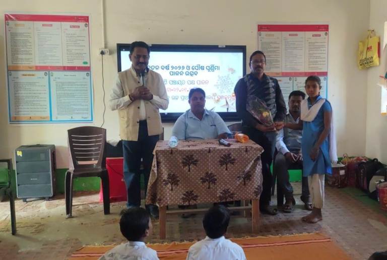 କଣ୍ଟାବାଞ୍ଜି, (କେପିଏନ୍ଏସ୍) : ତୁରେକେଲା ବ୍ଲକ ଅନ୍ତର୍ଗତ ପଖନମୁଣ୍ଡା ନୂତନ ଉଚ୍ଚ ପ୍ରାଥମିକ ବିଦ୍ୟାଳୟରେ ନବବର୍ଷ ଓ ପୌଷ ପୂର୍ଣ୍ଣିମା ଅବସରରେ ପାଣି ପଞ୍ଚାୟତ ପକ୍ଷ ପାଳିତ ହୋଇଯାଇଥିଲା । ପ୍ରଧାନ ଶିକ୍ଷକ ହରିଶଙ୍କର ସାହୁଙ୍କ ସଭାପତିତ୍ୱରେ ଅନୁଷ୍ଠିତ ସଭାରେ ମାନ୍ଦଲା କ୍ଲଷ୍ଟରର ସିଆର୍ସିସି ଧନସିଂ ମାଝୀ, ଶିକ୍ଷକ ମନୋଜ ତାଣ୍ଡି, ଅଲେଖ ବନଗୋଲା ଅତିଥି ଭାବରେ ଯୋଗ ଦେଇଥିଲେ । ଭବାନୀ ମାଝୀ ସ୍ୱାଗତ ସଙ୍ଗୀତ ଗାଇଥିଲେ ଓ ଛାତ୍ରୀବୃନ୍ଦ ଅତିଥି ମାନଙ୍କୁ ପୁଷ୍ପଗୁଚ୍ଛ ଦେଇ ସ୍ୱାଗତ କରିଥିଲେ । ପ୍ରକୃତି ବନ୍ଧୁ ଶିକ୍ଷକ ବିରଞ୍ଚି ନାରାୟଣ ଦାଶ ଉପସ୍ଥିତ ଛାତ୍ରଛାତ୍ରୀ ମାନଙ୍କୁ ନବବର୍ଷର ଅଭିନନ୍ଦନ ଜଣାଇଥିଲେ । ଆମ ସଂସ୍କୃତି ଓ ପର୍ବପର୍ବାଣୀ ହଜି ହଜି ଯାଉଥିବା ବେଳେ ପଶ୍ଚିମ ଓଡ଼ିଶାର ଗଣପର୍ବ ପୁଷ୍ପୁନି ଉପରେ ଆଲୋକପାତ କରିଥିଲେ । ତାପରେ ପାଣି ପଞ୍ଚାୟତ ପକ୍ଷ ପାଳନର ଗୁରୁତ୍ୱ ଓ ଉଦ୍ଦେଶ୍ୟ ଉପରେ ବକ୍ତବ୍ୟ ରଖିଥିଲେ । ପାଣି ପଞ୍ଚାୟତ ପକ୍ଷ ଉପରେ ଆଧାରିତ କୁଇଜ, ରଚନା ଓ ଚିତ୍ରାଙ୍କନ ପ୍ରତିଯୋଗିତା କରି ଛାତ୍ରଛାତ୍ରୀ ମାନଙ୍କୁ ପୁରସ୍କାର ପ୍ରଦାନ କରାଯାଇଥିଲା ।