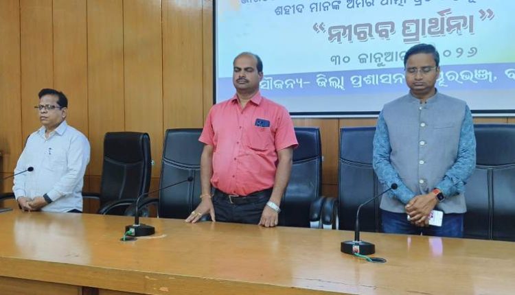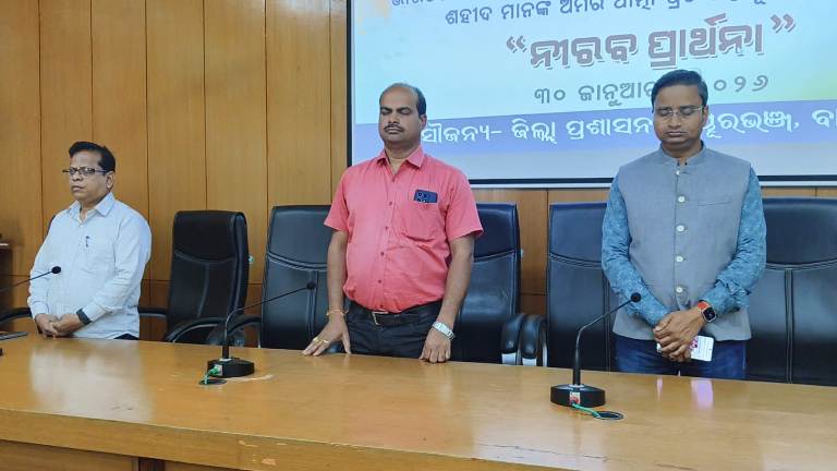 ବାରିପଦା, (ଦେବସ୍ମିତ ଚୌଧୁରୀ) : ମୟୂରଭଞ୍ଜ ଜିଲ୍ଲା ପ୍ରଶାସନ ତରଫରୁ ୧୧ ଘଟିକା ସମୟରେ ଜିଲ୍ଲାପାଳଙ୍କ କାର୍ଯ୍ୟାଳୟ ସ୍ଥିତ ସମ୍ମିଳନୀ କକ୍ଷଠାରେ ଜିଲ୍ଲା ସ୍ତରୀୟ ଶହୀଦ ଦିବସ -୨୦୨୬ ପାଳିତ ହୋଇଯାଇଛି । ଜାତିର ପିତା ମହାତ୍ମାଗାନ୍ଧୀଙ୍କ ତିରୋଧାନ ଦିବସ ପାଳନ ତଥା ଭାରତର ସ୍ୱାଧୀନତା ପାଇଁ ଯେଉଁ ମହାମନୀଷୀ ଗଣ ଦେଶମାତୃକା ପାଇଁ ତା’ଙ୍କ ପ୍ରାଣବଳି ଦେଇଥିଲେ । ସେମାନଙ୍କ ଅମର ଆତ୍ମା ପ୍ରତି ଭକ୍ତିପୂତ ଶ୍ରଦ୍ଧାଞ୍ଜଳି ଜ୍ଞାପନ ପରିପ୍ରେକ୍ଷୀରେ ପ୍ରତି ବର୍ଷ ଜାନୁଆରୀ ୩୦ ତାରିଖକୁ ଶହୀଦ ଦିବସ ଭାବେ ପାଳନ ହୋଇଥାଏ । ଏହି ଅବସରରେ ବାରିପଦା ଉପଜିଲ୍ଲାପାଳ ଡ. ଦୟାସିନ୍ଧୁ ପରିଡାଙ୍କ ଅଧ୍ୟକ୍ଷତାରେ ଏକ ନୀରବ ପ୍ରାର୍ଥନା ସଭା ଆୟୋଜିତ ହୋଇଥିଲା । ଦେଶ ପାଇଁ ପ୍ରାଣବଳି ଦେଇ ଶହୀଦ ହୋଇଥିବା ମହାମନୀଷୀ ବୀର ମହାପୁରୁଷମାନଙ୍କ ଅମର ଆତ୍ମା ପ୍ରତି ଭକ୍ତିପୂତ ଶ୍ରଦ୍ଧାଞ୍ଜଳି ଜ୍ଞାପନ ସହ “ଦୁଇ ମିନିଟ ନୀରବ ପ୍ରାର୍ଥନା ” କରାଯାଇଥିଲା । ଅନୁଷ୍ଠିତ ଉକ୍ତ କାର୍ଯ୍ୟକ୍ରମରେ ବାରିପଦା ତହସିଲଦାର ସପନ କୁମାର ସାହୁ ପ୍ରମୁଖଙ୍କ ସମେତ ଜିଲ୍ଲାପାଳଙ୍କ କାର୍ଯ୍ୟାଳୟର ବିଭିନ୍ନ ଉପବିଭାଗର ଡେପୁଟି କଲେକ୍ଟର, ସହକାରୀ ଜିଲ୍ଲାପାଳ, ଅନ୍ୟାନ୍ୟ ଅଧିକାରୀ ଓ କର୍ମଚାରୀମାନେ ଯୋଗଦେଇ ନୀରବ ପ୍ରାର୍ଥନାରେ ଅଂଶ ଗ୍ରହଣ କରିଥିଲେ । କାର୍ଯ୍ୟକ୍ରମକୁ ଜିଲ୍ଲା ସୂଚନା ଓ ଲୋକସମ୍ପର୍କ ଅଧିକାରୀ ବିକାଶ ରଞ୍ଜନ ମହାନ୍ତି ପରିଚାଳନା କରିଥିଲେ ଏବଂ ଉକ୍ତ କାର୍ଯ୍ୟାଳୟର କନିଷ୍ଠ ରାଜସ୍ୱ ସହକାରୀ ଲଳିତ ରଞ୍ଜନ ନାଏକ ଓ କର୍ମଚାରୀ ଲିଜତ ପ୍ରଧାନ ପରିଚାଳନାରେ ସହଯୋଗ କରିଥିଲେ ।
