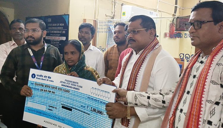 ବଙ୍ଗୋମୁଣ୍ଡା ଏସବିଆଇ ପକ୍ଷରୁ ପ୍ରଧାନମନ୍ତ୍ରୀ ଜୀବନ ଜ୍ୟୋତି ବୀମା ଯୋଜନା ରେ ୮ ଜଣ ନୋମିନୀଙ୍କୁ ୨ ଲକ୍ଷ ଟଙ୍କା ଲେଖାଁଏ ଚେକ ପ୍ରଦାନ କଲେ କଣ୍ଟାବାଞ୍ଜି ବିଧାୟକ
