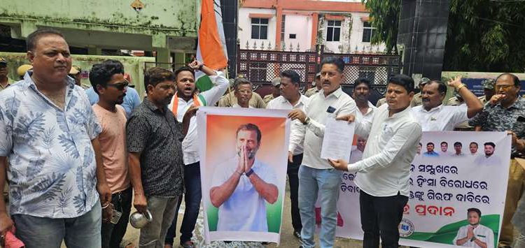 ରାଜ୍ୟ କଂଗ୍ରେସ କାର୍ଯ୍ୟାଳୟକୁ ଆକ୍ରମଣ ଓ ମହିଳା କର୍ମୀଙ୍କୁ ଦୁର୍ବ୍ୟବହାର ଦୋଷୀମାନଙ୍କ ବିରୁଦ୍ଧରେ ଦୃଢ କାର୍ଯ୍ୟାନୁଷ୍ଠାନ ଦାବିରେ ଯୁବ ଓ ଛାତ୍ର କଂଗ୍ରେସର ବିକ୍ଷୋଭ ପ୍ରଦର୍ଶନ