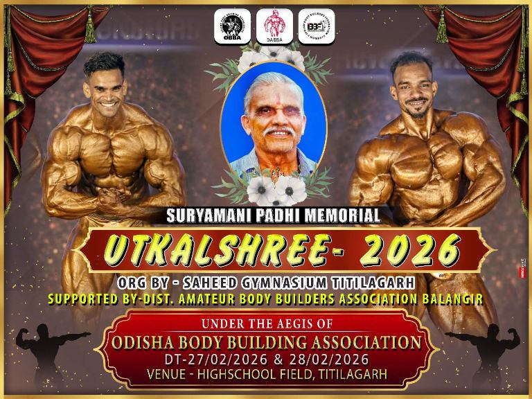 ଆସନ୍ତା ୨୭ ଏବଂ ୨୮ ରେ ଟିଟିଲାଗଡରେ ଅନୁଷ୍ଠିତ ହେବ ସୂର୍ଯ୍ୟମଣି ପାଢୀ ମେମୋରିଆଲ ଉତ୍କଳ ଶ୍ରୀ ୨୦୨୬ ସୁନ୍ଦର ସ୍ୱାସ୍ଥ୍ୟ ପ୍ରତିଯୋଗିତା