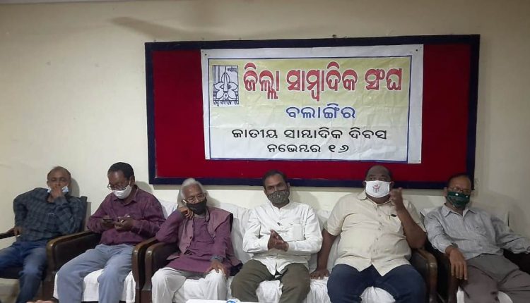 ବଲାଙ୍ଗିର ଜିଲା ସାମ୍ବାଦିକ ସଂଘ ଆନୁକୂଲ୍ୟରେ ସଂଘର ସମ୍ମିଳନୀ କକ୍ଷ ଠାରେ ସଂଘର ସଭାପତି ହରିନାରାୟଣ ପୂଜାରୀଙ୍କ ଅଧ୍ୟକ୍ଷତାରେ ଜାତୀୟ ପ୍ରେସ ଦିବସ ପାଳିତ ହୋଇଯାଇଛି । ସାଂପ୍ରତିକ କରୋନା ପରିସ୍ଥିତିରେ ସାମାଜିକତା ଦୂରତା ରକ୍ଷା କରି ଜାତୀୟ ପ୍ରେସ ଦିବସକୁ ନିଡାମ୍ବର ଭାବେ ପାଳନ କରାଯାଇଛି । ସଂଘର ସାଧାରଣ ସମ୍ପାଦକ ବଳରାମ ମିଶ୍ରଙ୍କ ସ୍ୱାଗତ ଭାଷଣ ଦେଇଥିଲେ । ସଂଘର ପ୍ରତିଷ୍ଠାତା ସଦସ୍ୟ ତଥା ବରିଷ୍ଠ ଉପଦେଷ୍ଟା ସତ୍ୟ ନାରାୟଣ ବେହେରା, ଗୋପବନ୍ଧୁ ଶତପଥୀ, ନବୀନ କୁମାର ପଶାୟତ, ସମ୍ପାଦକ ରଂଜିତ ବେହେରା ପ୍ରମୁଖ ମଞ୍ଚାସୀନ ଥିଲେ । ବରିଷ୍ଠ ସାମ୍ବାଦିକ ଶ୍ରୀ ବେହେରା, ଗୋପବନ୍ଧୁ ଶତପଥୀ, ସୁଧୀର କୁମାର ମିଶ୍ର, ବିରେନ୍ଦ୍ର କୁମାର ଝାଙ୍କର, କୁନା ବାଗ, ବିଭୁ କଲ୍ୟାଣ ଗଡତ୍ୟା, ପ୍ରଶାନ୍ତ ମହାକୁର ପ୍ରମୁଖ ଜାତୀୟ ସାମ୍ବାଦିକତା ଦିବସ ଅବସରରେ ନିଜ ନିଜର ବକ୍ତବ୍ୟ ରଖିଥିଲେ । କୋଭିଡ ମହାମାରୀ ସମୟରେ ବଲାଙ୍ଗିର ଜିଲା ସାମ୍ବାଦିକ ସଂଘ, ସଂଘର ସମସ୍ତ ସଦସ୍ୟ, ସାମ୍ବାଦିକ ଓ ଖବର କାଗଜ ହକର ମାନଙ୍କୁ ଆର୍ଥିକ ସହାୟତା ପ୍ରଦାନ କରି ରାଜ୍ୟରେ ନୂଆ ଉଦାହରଣ ପ୍ରତିଷ୍ଠା କରିଥିବାରୁ ସମସ୍ତେ ସାଧୁବାଦ ଜଣାଇଥିଲେ ।