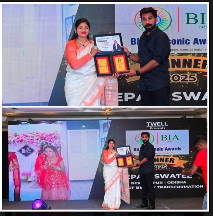 ବ୍ରହ୍ମପୁର, (କେ.ସତ୍ୟନାରାୟଣ ରେଡ୍ଡୀ) : ମହୀଶୂରଠାରେ ଆୟୋଜିତ ଶ୍ରେଷ୍ଠ ମହିଳା ଉଦ୍ୟୋଗୀ କାର୍ଯ୍ୟକ୍ରମରେ ବ୍ରହ୍ମପୁରର ବୋହୂ ଇପାରି ସ୍ୱାତୀ ପୁରସ୍କୃତ ହୋଇଛନ୍ତି । ସୂଚନା ଯୋଗ୍ୟ ଯେ ବ୍ରହ୍ମପୁରର ମହିଳା ଇପାରି ସ୍ୱାତୀ ଭାରତ ଆଇକୋନିକ ଆୱାର୍ଡ଼ରେ ସମ୍ମାନୀତ ହୋଇଛନ୍ତି । ବ୍ରହ୍ମପୁର ମହାନଗର ନିଗମର ପ୍ରେମ ନଗର ପ୍ରଥମ ଲାଇନ ନିବାସୀ ଇପାରୀ ଶ୍ରୀକାନ୍ତଙ୍କ ଧର୍ମପତ୍ନୀ ସ୍ୱାତୀ ଏପରି ସମ୍ମାନ ପାଇ ଥିବାରୁ ତାଙ୍କୁ ବିଭିନ୍ନ ମହଲରୁ ପ୍ରସଂଶା କରାଯାଇଛି । ଏହି କାର୍ଯ୍ୟକ୍ରମରେ ଭାରତର ବିଭିନ୍ନ ରାଜ୍ୟରୁ ପ୍ରାୟ ୬୦୦ ଜଣ ମହିଳା ଭାଗ ନେଇଥିବା ବେଳେ ସ୍ୱାତୀ ଓଡିଶାରୁ ଜଣେ ହିଁ ଶ୍ରେଷ୍ଠ ମହିଳା ଉଦ୍ୟୋଗୀ ଭାବେ ଏହି ସମ୍ମାନ ପାଇଛନ୍ତି । ମହିଶୂରର ରିଜେଣ୍ଡ ନାମକ ଏକ ହୋଟେଲ ସମ୍ମିଳନୀ କକ୍ଷରେ ଆଇକନ୍ ଅଫ ବିଉଟି ଟ୍ରାଫରମେସନ ତରଫରୁ ଏପରି ଭାରତ ଆଇ କନ୍ ଆୱାର୍ଡ଼ ୨୦୨୫ସ୍ୱାତୀଙ୍କୁ ପ୍ରଦାନ କରାଯାଇଛି । ତାଙ୍କୁ ଏକ ମାନପତ୍ର ସହ ଟ୍ରଫି ପ୍ରଦାନ କରାଯାଇଥିଲା । ଏହା ପୂର୍ବରୁ ସ୍ୱାତୀଙ୍କୁ ଭୁବନେଶ୍ୱରଠାରେ ଥିବା ନ୍ୟୁ-ମାରୀୟାନ ହୋଟେଲ୍ ସମ୍ମିଳନୀ କକ୍ଷରେ ଓଡିଶା କର୍ପୋରେଟ ଫାଉଣ୍ଡେସନ ତଥା ଓସିଏଫ ତରଫରୁ ମଧ୍ୟ ଶ୍ରେଷ୍ଠ ମହିଳା ଉଦ୍ୟୋଗୀ ଭାବେ ସମ୍ମାନ ମିଳିଥିଲ । ପ୍ରକାଶ ଥାଉକି, ସ୍ୱାତୀ ଭୁବନେଶ୍ବରଠାରେ କୀଟ୍ ରେ ଆଇଟି ଶିକ୍ଷା ଶେଷ କରିବା ପରେ ମୁମ୍ବାଇଠାରେ ଏକ କମ୍ପାନୀରେ ତିନି ବର୍ଷ କାମ କରିଥିଲେ । ପରେ ସେ ଚାକିରୀ ଛାଡ଼ି ବ୍ରହ୍ମପୁରଠାରେ ନିଜର ଫ୍ୟାସନକ ସଲୋନ ସହ ଇପାରି ଜୁଏଲରର ଦାୟିତ୍ଵ ଗ୍ରହଣ କରି ତାଙ୍କର ପାରିବାରିକ ବ୍ୟବସାୟ ବୃଦ୍ଧି କରିବାରେ ସହଯୋଗ କରି ଆସୁଛନ୍ତି ବୋଲି କୁହାଯାଏ ।