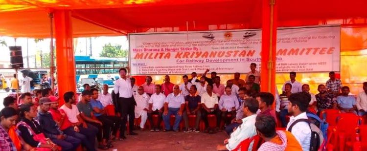 ସ୍ଥାନୀୟ ବ୍ରହ୍ମପୁର ରେଳ ଷ୍ଟେସନ ସମ୍ମୁଖରେ ଦକ୍ଷିଣ ଓଡ଼ିଶା ରେଳପଥ ବିକାଶ ମିଳିତ କ୍ରିୟାନୁଷ୍ଠାନ କମିଟି ଆନ୍ଦୋଳନ