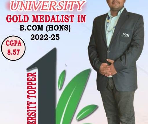ଜେଏସଏମ କମର୍ସ ଡିଗ୍ରୀ କଲେଜର ଛାତ୍ର ଅର୍ଚ୍ଚିସ୍ମାନ ମିଶ୍ର ବି.କମ୍ ୨୦୨୨-୨୫ ଶିକ୍ଷା ବର୍ଷରେ ରାଜେନ୍ଦ୍ର ବିଶ୍ୱବିଦ୍ୟାଳୟରେ ପ୍ରଥମ ସ୍ଥାନ ଅଧିକାର କରି ସୂର୍ଣ୍ଣ ପଦକ