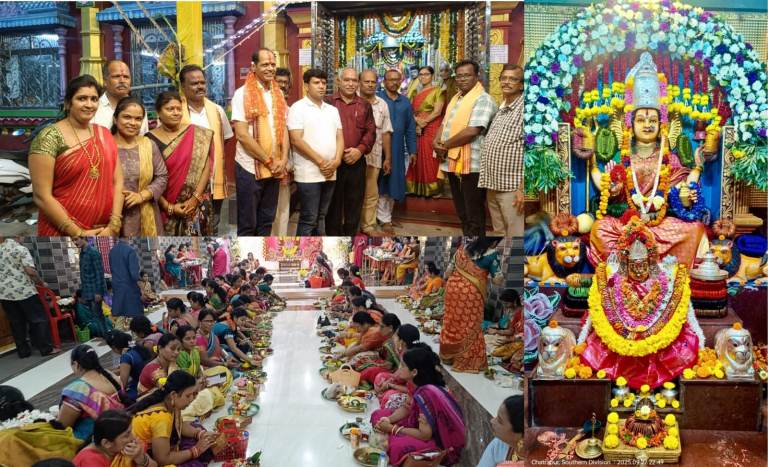 ବ୍ରହ୍ମପୁର, (କେ.ସତ୍ୟନାରାୟଣ ରେଡ୍ଡୀ) : ଛତ୍ରପୁର ସହରର ଅଧିଷ୍ଠାତ୍ରୀ ଦେବୀ ଶ୍ରୀ ଶ୍ରୀ ମା’ ରାମାୟାଣାମ୍ମାଙ୍କ ମନ୍ଦିର ପ୍ରାଙ୍ଗଣରେ ନବରାତ୍ର ପୂଜା ବର୍ଣ୍ଣାଢ଼୍ୟ ସମାରୋହରେ ପାଳିତ ହୋଇଆସୁଥିବା ବେଳେ ସୋମବାର ସନ୍ଧ୍ୟାରେ ଦେବୀଙ୍କ ମହାଷ୍ଟମୀ ପୂଜା ନୀତିକାନ୍ନ୍ତି ଅନୁସାରେ ସମାହିତ ହୋଇଯାଇଛି । ସୂଚନା ଥାଉକି, ଏହା ଛତ୍ରପୁର ସହରର ଏହି ପ୍ରତ୍ୟକ୍ଷ ଦେବୀ ଠାକୁରାଣୀ ବୋଲି ଜନମାନସରେ ପରିଚିତ ଏବଂ ଏହି ମନ୍ଦିର ମା’ ଠାକୁରାଣୀ ମନ୍ଦିର ଭାବେ ଖ୍ୟାତି ରହିଛି । ପ୍ରତି ଦୁଇ ବର୍ଷକୁ ଥରେ ଏହି ଭଗବତୀ ମା’ ଙ୍କ ନାମରେ ଠାକୁରାଣୀ ଯାତ୍ରା ପ୍ରାୟତଃ ମାସେ ବ୍ୟାପୀ ଯାତ୍ରା ସମ୍ଭାର ଆୟୋଜିତ ହୋଇଥାଏ । ଏହି ଠାକୁରାଣୀ ଯାତ୍ରା ଓଡ଼ିଶା ପ୍ରସିଦ୍ଧ ଅଟେ । ଦେବୀଙ୍କ ମନ୍ଦିର ଗଠନ ଶୈଳୀ ଏବଂ ପୂଜାର୍ଚ୍ଚନା ବିଧିବିଧାନ ଆନ୍ଧ୍ର ପ୍ରଥା ତଥା ତେଲୁଗୁ ସଂସ୍କୃତି ପରମ୍ପରା, ଧର୍ମଧାରଣ ନୀତି ଆଧାରରେ ରହିଥିବା ଦେଖାଯାଏ । ପ୍ରତିବର୍ଷ ନବରାତ୍ର ପୂଜା ମଧ୍ୟ ଏକ ନିଆରା ପରମ୍ପରାରେ ନବଦିନ ବ୍ୟାପୀ ସମାହିତ ହୋଇ ଆସୁଅଛି । ଉଦ୍ଭୟ ତେଲୁଗୁ ଓ ଓଡ଼ିଆ ଭାଷାଭାଷୀର ଲୋକଙ୍କ ସର୍ବୋପରି ଏହି ଅଞ୍ଚଳରେ ବସବାସ କରୁଥିବା ଅଧିବାସୀଙ୍କ ପ୍ରତ୍ୟକ୍ଷ ସାନ୍ନିଧ୍ୟ ଦେବୀ ଭାବେ ପୂଜିତା ଶ୍ରୀ ଶ୍ରୀ ରାମାୟାଣାମ୍ମାଙ୍କ ନବରାତ୍ର ପୂଜା ଖୁବ୍ ନିଆରା ଏବଂ ବିଶେଷ କରି ବହୁ ସଂଖ୍ୟାରେ ମହିଳାମାନଙ୍କ ଗହଳ ଚହଳରେ ଉତ୍ସବମୁଖର ହୋଇ ଉଠିଥାଏ । ତେଲୁଗୁ ସଂସ୍କୃତିର ବେଦ ମନ୍ତ୍ରରେ ସ୍ଥାନଟି ଉଚ୍ଛୁଳି ପଡିଥାଏ । ପ୍ରତିଦିନ ସାନ୍ଧ୍ୟ ବେଳେ ୧୦୮ ମହିଳା ଏବଂ ତଦୃର୍ଦ୍ଧ ସଂଖ୍ୟାରେ ମହିଳାମାନଙ୍କ ଦ୍ୱାରା ଗୋଷ୍ଠୀଗତ ଭାବେ ଦେବୀ ଭଗବତୀଙ୍କ ସ୍ତୋତ୍ର, ଶ୍ରୀଦୁର୍ଗା ଶହସ୍ରନାମ ଉଚ୍ଚ୍ଚାରଣ ହେଉଥିବା ବେଳେ ମହିଳାମାନଙ୍କ ଦ୍ଵାରା କୁଙ୍କୁମ ପୂଜା ଆଦି ସମସ୍ତଙ୍କ ପାଇଁ ଖୁବ୍ ଆକର୍ଷଣୀୟ ଭାବେ ଆୟୋଜିତ ହୋଇଥାଏ । ଏହା ତେଲୁଗୁ ଆଧ୍ୟାତ୍ମିକ ସାଂସ୍କୃତିକ ବାତାବରଣକୁ ଆହୁରି ଶୀହରିତ କରିଥାଏ । ରୌପ୍ୟ ମୁକୁଟ ଏବଂ ସ୍ଵର୍ଣ୍ଣ ଖଚିତ ଭଗବତୀ ଠାକୁରାଣୀଙ୍କ ପ୍ରତିମୂର୍ତ୍ତି ଅଗଣିତ ଦର୍ଶକଙ୍କୁ ବିମୋହିତ କରିଥାଏ । ସଦାସର୍ବଦା ସ୍ଵର୍ଣ୍ଣ ଅଳଙ୍କାର ଦେବୀଙ୍କ ଆଭୂଷଣରେ ଭରପୂର ହୋଇଥାଏ । ସର୍ବୋପରି ଦେବୀଙ୍କ ଦୈନିକ ନୀତିକାନ୍ତି, ପୂଜା ଆରାଧନା ଆଦି ତେଲୁଗୁ ସଂସ୍କୃତିରେ ସମ୍ପନ୍ନ ହୋଇଥାଏ । ତେଲୁଗୁ ପୂଜା ପଣ୍ତିତଙ୍କ ମନ୍ତ୍ରପାଠରେ ସମାହିତ ହୋଇ ଛତ୍ରପୁର ସହର ଟି ମୁଖରିତ ହୋଇଥାଏ । ଚଳିତ ବର୍ଷର ପୂଜା ଆରାଧନାରେ ପଣ୍ଡିତ ଶ୍ରୀ ଜେ. ହରିଗୋପାଳ ଶାସ୍ତ୍ରୀ ପୌରହିତ୍ୟ କରି ଲୋକଙ୍କ ମଙ୍ଗଳବିଧାନ ପାଇଁ ଅଂଶଗ୍ରହଣ କରି ଆସିଛନ୍ତି ।