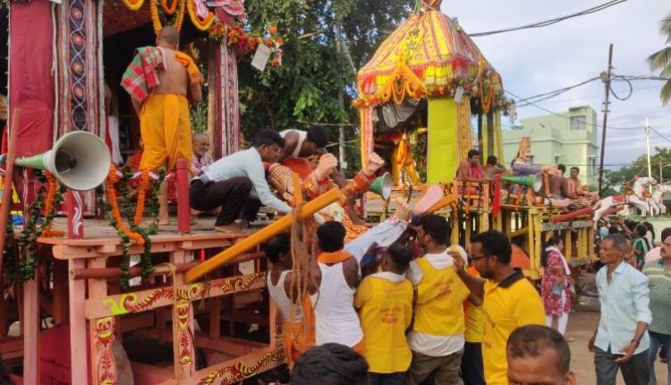 ବ୍ରହ୍ମପୁର, (କେ. ସତ୍ୟନାରାୟଣ ରେଡ୍ଡୀ) : ବିଶ୍ୱ ପ୍ରସିଦ୍ଧ ପୁରୀ ରଥଯାତ୍ରାରେ ବିଭିନ୍ନ ଉଲ୍ଲେଖନୀୟ ସେବା କାର୍ଯ୍ୟ କରି ସମସ୍ତଙ୍କଠୁ ତଥା ଓଡ଼ିଶାର ମୁଖ୍ୟ ଶାସନ ସଚିବଙ୍କଠୁ ପ୍ରଶଂସା ପାଇବା ପରେ ଛତ୍ରପୁରର ଅଗ୍ରଣୀ ସଂଗଠନ ‘ସେବା ପ୍ରତିନିଧି’ ସ୍ଵେଚ୍ଛାସେବୀ ଅନୁଷ୍ଠାନର ସଦସ୍ୟମାନେ ବାହୁଡା ଯାତ୍ରା ସମୟରେ ଗଞ୍ଜାମ ଜିଲ୍ଲାର ଖଲ୍ଲିକୋଟ ଗଡ଼ରେ ଅନୁଷ୍ଠିତ ରଥଯାତ୍ରାରେ ଶ୍ରୀଜଗନ୍ନାଥଙ୍କର ସେବା କରିବା ପାଇଁ ମନସ୍ଥ କରିଥିଲେ ଏବଂ ଉକ୍ତ କାର୍ଯ୍ୟକ୍ରମରେ ସହଯୋଗ କରିଥିଲେ । ଗଞ୍ଜାମ ପୋଲିସ ବିଭାଗ ପକ୍ଷରୁ ମଧ୍ୟ କଡ଼ା ସୁରକ୍ଷା ବ୍ୟବସ୍ଥା ଗ୍ରହଣ କରାଯାଇଥିଲା । ଏହି କ୍ରମରେ ବାହୁଡା ଉପଲକ୍ଷେ ଛତ୍ରପୁର ଏସ୍.ଡ଼ି.ଜେ.ଏମ୍. କୋର୍ଟର କ୍ୟାଡ଼ର ଏପିପି ରାଜେଶ କୁମାର ମିଶ୍ରଙ୍କ ପ୍ରତ୍ୟକ୍ଷ ତତ୍ତ୍ୱାବଧାନରେ ତଥା ଆଇ.ଆର୍.ଇ ପ୍ରତିଷ୍ଠାନରେ କାର୍ଯ୍ୟରତ ମନୋରଞ୍ଜନ ବେହେରା, ଟୁଟୁ ନାୟକ, ଓକିଲ ଲସିତ ବରନ ବେହେରାଙ୍କ ନେତୃତ୍ୱରେ ପ୍ରାୟ ୪୦ ଜଣ ସଦସ୍ୟ ଖଲ୍ଲିକୋଟ ସ୍ଥିତ ଜଗନ୍ନାଥ ମନ୍ଦିର ନିକଟରେ ପହଞ୍ଚି ରଥଯାତ୍ରା ସେବାକାର୍ଯ୍ୟରେ ନିୟୋଜିତ ହୋଇଥିଲେ । ସର୍ବ ପ୍ରଥମେ ଶ୍ରୀଜୀଉଙ୍କର ପହଣ୍ଡି ବିଜେ ସମୟରେ ଶୃଙ୍ଖଳିତ ଭାବେ କିପରି ପହଣ୍ଡି ହେବ, ତାକୁ ନେଇ ଏକ କରିଡର କରିଥିଲେ ଓ ପରେ ରଥଟଣା କିପରି ଶୃଙ୍ଖଳିତ ହେବ ତାକୁ ନଜରରେ ରଖି ପୋଲିସ ବିଭାଗକୁ ଯଥା ସମ୍ଭବ ସାହାଯ୍ୟର ହାତ ବଢାଇଥିଲେ । ସୂଚନାଯୋଗ୍ୟ, ଖଲ୍ଲିକୋଟ ରଥଯାତ୍ରାରେ ସୁଭଦ୍ରାଙ୍କ ରଥ କେବଳ ମହିଳାମାନେ ଟାଣିଥାନ୍ତି । ତେଣୁ ଅସାମାଜିକ ବ୍ୟକ୍ତି ସୁଯୋଗ ଅପେକ୍ଷାରେ ରହିଥିଲେ କିଛି ବିଭ୍ରାଟ କରିବା ପାଇଁ କିନ୍ତୁ ପୂର୍ବରୁ ସତର୍କ ଥିବା ସ୍ୱେଚ୍ଛାସେବୀମାନଙ୍କ ପାଇଁ ଶୃଙ୍ଖଳିତ ଭାବେ ରଥଟଣା ସରିଥିଲା ଓ ବର୍ଷା ସତ୍ତ୍ୱେ ତିନି ରଥ ମନ୍ଦିର ନିକଟରେ ପହଞ୍ଚିଥିଲା । ଏହି ସେବାରେ ଅନ୍ୟମାନଙ୍କ ମଧ୍ୟରେ ମାଧବ ସାସମଲ, ଆଇ.ଆର୍.ଇରେ କାର୍ଯ୍ୟରତ ସନାତନ ମହାରଣା, ଦୁର୍ଯ୍ୟୋଧନ ସ୍ୱାଇଁ, ଅଯୋଧ୍ୟା ପରିଡା, ଟିଟାନିୟମ ପ୍ଲାଣ୍ଟର ବି.ବୈରାଗି, ମୋହନ ବେହେରା, ଦୟାନିଧି ସାହୁ ଓ ଗୋପାଳପୁର ପୋର୍ଟରେ କାର୍ଯ୍ୟରତ ଲିଙ୍ଗରାଜ ସାହୁ ପ୍ରମୁଖ ଯୋଗ ଦେଇଥିଲେ ।