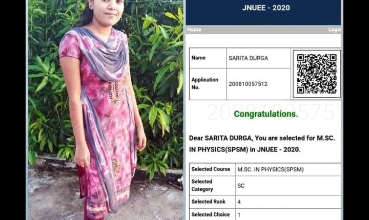 ସେହିପରି ଜୁନାଗଡ଼ ବ୍ଳକ ପଲାସ ଗ୍ରାମର ଛାତ୍ରୀ ସରୀତା ଦୁର୍ଗା ପଦାର୍ଥ ବିଜ୍ଞାନରେ ସର୍ବଭାରତୀୟ ସ୍ତରରେ ୪ ନଂ ରେଙ୍କ ରଖି କୃତିତ୍ବ ହାସଲ କରିଛନ୍ତି । ସରୀତା ମଧ୍ୟ ସରକାରୀ ସ୍ବୟଂଶାସିତ ମହାବିଦ୍ୟାଳୟ ଭବାନୀପାଟଣା ଠାରେ ୨୦୧୯ ମସିହାରେ ପଦାର୍ଥ ବିଜ୍ଞାନରେ ଡିଗ୍ରୀ ହାସଲ କରିଛନ୍ତି । ଉଭୟଙ୍କ ସଫଳତା ପାଇଁ କଳାହାଣ୍ଡି ସାରା ଖୁସିର ଲହରୀ ଖେଳିଯାଇଛି । ବିଶ୍ବସ୍ତରୀୟ ଜେଏନୟୁ ବିଶ୍ବବିଦ୍ୟାଳୟରେ ପଢିବାର ସୁଯୋଗ ପାଇଥିବାରୁ ରାଜ୍ୟ ବିଜୁ ଛାତ୍ର ଜନତା ଦଳର କାର୍ୟ୍ୟକାରୀ ସଭାପତି ଅବିନାଶ ଠାକୁର ଉଭୟଙ୍କ କୃତିତ୍ବ ପାଇଁ ତାଙ୍କୁ ଅଭିନନ୍ଦନ ଜଣାଇଛନ୍ତି । ଏହାସହ ଜିଲ୍ଲାର ବିଭିନ୍ନ ମହଲରୁ ଉଭୟଙ୍କୁ ଶୁଭେଚ୍ଛାର ସୁଅ ଛୁଟିବାରେ ଲାଗିଛି ।