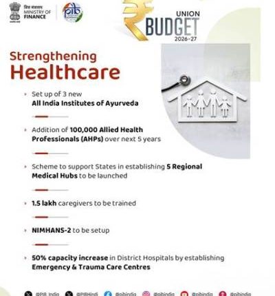 ଅର୍ଥମନ୍ତ୍ରୀ ପ୍ରସ୍ତାବ ଦେଇଥିଲେ: (i) ୩ଟି ନୂତନ ଅଖିଳ ଭାରତୀୟ ଆୟୁର୍ବେଦ ପ୍ରତିଷ୍ଠାନ ସ୍ଥାପନ କରିବା; (ii) ସାର୍ଟିଫିକେସନ୍ ଇକୋସିଷ୍ଟମର ଉଚ୍ଚ ମାନଦଣ୍ଡ ପାଇଁ ଆୟୁଷ ଫାର୍ମାସି ଏବଂ ଔଷଧ ପରୀକ୍ଷା ଲ୍ୟାବକୁ ଉନ୍ନତ କରିବା ଏବଂ ଅଧିକ ଦକ୍ଷ କର୍ମଚାରୀ ଉପଲବ୍ଧ କରିବା; (iii) ପାରମ୍ପରିକ ଔଷଧ ପାଇଁ ପ୍ରମାଣ-ଆଧାରିତ ଗବେଷଣା, ତାଲିମ ଏବଂ ସଚେତନତାକୁ ବୃଦ୍ଧି କରିବା ପାଇଁ ଜାମନଗରରେ ଡବ୍ଳୁଏଚଓ ଗ୍ଲୋବାଲ୍ ପାରମ୍ପରିକ ଔଷଧ କେନ୍ଦ୍ରକୁ ବିକଶିତ କରିବା।