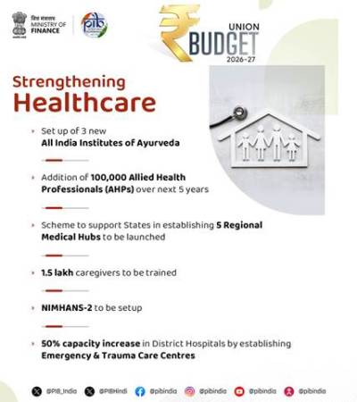 (୩) ଭାରତକୁ ଚିକିତ୍ସା ପର୍ଯ୍ୟଟନ ସେବାର ଏକ କେନ୍ଦ୍ର ଭାବରେ ପ୍ରୋତ୍ସାହିତ କରିବା ପାଇଁ, କେନ୍ଦ୍ରୀୟ ବଜେଟରେ ଘରୋଇ କ୍ଷେତ୍ର ସହଭାଗୀତାରେ ପାଞ୍ଚଟି ଆଞ୍ଚଳିକ ଚିକିତ୍ସା କେନ୍ଦ୍ର ପ୍ରତିଷ୍ଠା କରିବାରେ ରାଜ୍ୟଗୁଡ଼ିକୁ ସମର୍ଥନ କରିବା ପାଇଁ ଏକ ଯୋଜନା ଆରମ୍ଭ କରିବାର ପ୍ରସ୍ତାବ ଦିଆଯାଇଛି। ଏହି କେନ୍ଦ୍ରଗୁଡ଼ିକ ଚିକିତ୍ସା, ଶିକ୍ଷା ଏବଂ ଗବେଷଣା ସୁବିଧାଗୁଡ଼ିକୁ ମିଶ୍ରଣ କରୁଥିବା ସମନ୍ୱିତ ସ୍ୱାସ୍ଥ୍ୟସେବା କମ୍ପ୍ଲେକ୍ସ ଭାବରେ କାର୍ଯ୍ୟ କରିବ। ସେମାନଙ୍କ ପାଖରେ ଆୟୁଷ କେନ୍ଦ୍ର, ମେଡିକାଲ୍ ଭାଲ୍ୟୁ ପର୍ଯ୍ୟଟନ ସୁବିଧା କେନ୍ଦ୍ର ଏବଂ ନିଦାନ, ପରବର୍ତ୍ତୀ ଯତ୍ନ ତଥା ପୁନର୍ବାସ ପାଇଁ ଭିତ୍ତିଭୂମି ରହିବ। ଏହି କେନ୍ଦ୍ରଗୁଡ଼ିକ ଡାକ୍ତର ଏବଂ ଏଏଚପି ସମେତ ସ୍ୱାସ୍ଥ୍ୟ ବୃତ୍ତିଗତଙ୍କ ପାଇଁ ବିବିଧ ନିଯୁକ୍ତି ସୁଯୋଗ ପ୍ରଦାନ କରିବ।