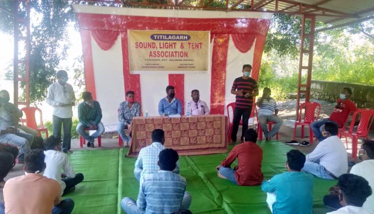 ଏଥିରେ ସଂଘର ଅଧ୍ୟକ୍ଷ ଧୀରେନ୍ଦ୍ର ସାହୁ, ଉପାଧ୍ୟକ୍ଷ ରସିକ ପୋଢ଼, ସମ୍ପାଦକ ତ୍ରିଲୋଚନ ନାୟକ, ସହ ସମ୍ପାଦକ ମନୀଷ ସୁନା, କୋଷାଧ୍ୟକ୍ଷ ମୁରଲୀ ପୁଟେଲ, ଉପ କୋଷାଧ୍ୟକ୍ଷ ନାରାୟଣ ବଗର୍ତ୍ତୀ ଆଦି ଯୋଗ ଦେଇଥିଲେ । ଏହା ସହ ପରାମର୍ଶଦାତା ଭାବରେ ସିମନ୍ ଜାଲ, ଶଙ୍କର ଜାଲ, ବ୍ରହ୍ମାନନ୍ଦ ରଣା, ଅମୂଲ୍ୟ ମହାକୁର ଓ ଅନ୍ୟାନ୍ୟ ସଦସ୍ୟ ଭାବରେ ଟିଟିଲାଗଡର ବିଭିନ୍ନ ଟେଣ୍ଟ ମାଲିକ, ଲାଇଟ୍ ଓ ସାଉଣ୍ଡ ମାଲିକ ମାନେ ଯୋଗ ଦେଇ ନିଜ ନିଜ ମତାମତ ଉପସ୍ଥାପନ କରିଥିଲେ । ଏହି କାମରେ ମାଲିକମାନେ ନିଜ ପରିବାରର ଭରଣପୋଷଣ କରିିବା ସହ ତାଙ୍କ ପାଖରେ କାମ କରୁଥିବା ପିଲାମାନଙ୍କ ଭରଣପୋଷଣ କରୁଥିଲେ । କିନ୍ତୁ ବର୍ତ୍ତମାନ ସବୁ ବନ୍ଦ ପଡ଼ିଥିବା ଯୋଗୁଁ ବହୁ ଅସୁବିଧାର ସମ୍ମୁଖୀନ ହେଉଥିବା କହିଛନ୍ତି । ସରକାର ସମସ୍ତଙ୍କୁ କିଛି ନା କିଛି ଆର୍ଥିକ ସହାୟତା ଦେବା ସହ କୌଣସି ନିୟମ ଲାଗୁକରି ବ୍ୟବସାୟ କରିବାକୁ ଅନୁମତି ଦେଉଥିବା ବେଳେ ଏହି ଲାଇଟ୍, ସାଉଣ୍ଡ ଏବଂ ଟେଣ୍ଟ ବ୍ୟବସାୟୀଙ୍କ ପ୍ରତି କାହିଁକି ଦୃଷ୍ଟି ଦିଆ ଯାଇନାହିଁ ବୋଲି ପ୍ରଶ୍ନ କରିଛନ୍ତି । ସେମାନେ ଲକ୍ଷ ଲକ୍ଷ ଟଙ୍କା ଋଣ ଆଣି ବ୍ୟବସାୟରେ ଲଗାଇଥିବା ବେଳେ ବର୍ତ୍ତମାନ ଏହା ସବୁ ସାମାନ ବେକାର ପଡ଼ି ରହିଛି । ଏହା ସହ ସମସ୍ତେ ମିଶି ଏକ ସଂଘ ଗଠନ କଲେ କେଉଁ କେଉଁ ଲାଭ ହେବ ଏବଂ ଜଣେ ଅନ୍ୟ ଜଣକୁ ସହାୟତା କରିପାରିବେ ବୋଲି ଆଲୋଚନା କରିଛନ୍ତି । ଯଥାଶୀଘ୍ର ତାଙ୍କ ସଂଘର ପଞ୍ଜିକରଣ କରାଯିବ ବୋଲି ସୂଚନା ଦେବା ସହ ସରକାରଙ୍କ ଠାରେ ତାଙ୍କ ବ୍ୟବସାୟ ପ୍ରତି ଦୃଷ୍ଟି ଆକର୍ଷଣ କରାଯିବ ବୋଲି କହିଛନ୍ତି ।