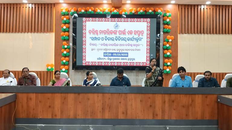 ବରିଷ୍ଠ ନାଗରିକଙ୍କ ପାଇଁ ଏକ ସପ୍ତାହ ପାଳନ ଅବସରରେ “ସମ୍ମାନ ଓ ବିଚାର ବିନିମୟ କାର୍ଯ୍ୟକ୍ରମ” ଆୟୋଜିତ