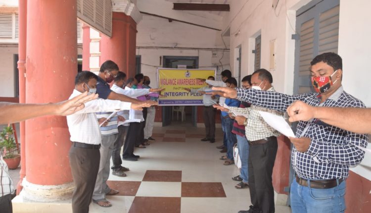 ବଲାଙ୍ଗିର, (କେପିଏନ୍ଏସ୍) : ଚଳିତ ବର୍ଷ ଦୁର୍ନୀତି ନିବାରଣ ସଚେତନତା ସପ୍ତାହ ଅକ୍ଟୋବର ୨୭ ତାରିଖଠାରୁ ନଭେମ୍ବର ମାସ ୨ ତାରିଖ ପର୍ଯ୍ୟନ୍ତ ପାଳନ କରାଯାଉଛି । ଏହି ସପ୍ତାହ ପାଳନ ପରିପ୍ରେକ୍ଷୀରେ ଆଜି ପୂର୍ବାହ୍ନ ୧୧ ଘଟିକା ସମୟରେ ଜିଲ୍ଲାପାଳଙ୍କ କାର୍ଯ୍ୟାଳୟ ପରିସରରେ ଦୁର୍ନୀତି ନିବାରଣ ଶପଥ ପାଠ କାର୍ଯ୍ୟକ୍ରମର ଆୟୋଜନ କରାଯାଇଥିଲା ।