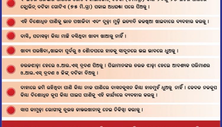 ଭୁବନେଶ୍ୱର, (କେପିଏନ୍ଏସ୍) : ବନ୍ୟା ପ୍ରଭାବିତ ଅଂଚଳରେ ସ୍ୱାସ୍ଥ୍ୟ ପ୍ରତି ବିଶେଷ ସତର୍କତା ଅବଲମ୍ବନ କରିବାକୁ ରାଜ୍ୟ ସରକାରଙ୍କ ପକ୍ଷରୁ ସୂଚନା ଦିଆଯାଇଛି । ନଈ, ନାଳ, ପୋଖରୀ, ଚୁଆ ଆଦିର ଦୂଷିତ ଜଳ ପିଅନ୍ତୁ ନାହିଁ । କୋଭିଡ଼ ସଂପର୍କିତ ସମସ୍ତ ପ୍ରତିଷେଧକ ନିୟମର କଡ଼ା ଅନୁପାନଳ କରନ୍ତୁ ଓ ସୁରକ୍ଷିତ ରୁହନ୍ତୁ ବୋଲି କୁହାଯାଇଥିବା ବେଳେ ଅଧିକ ସୂଚନା ପାଇଁ ନିକଟସ୍ଥ ଆଶା କିମ୍ବା ସ୍ୱାସ୍ଥ୍ୟକର୍ମୀଙ୍କ ସହ ଯୋଗାଯୋଗ କରିବାକୁ ପରାମର୍ଶ ଦିଆଯାଇଛି ।