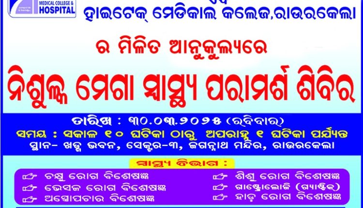 ନିଃଶୁଳ୍କ ମେଗା ସ୍ୱାସ୍ଥ୍ୟ ପରାମର୍ଶ ଶିବିର ଆସନ୍ତା ୩୦ରେ