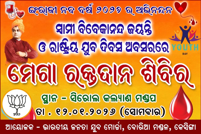 କେସିଙ୍ଗା, (ପ୍ରୀତେଶ ପଟେଲ) : ରକ୍ତ ଦାନ ମହତ୍ ଦାନ । କଳାହାଣ୍ଡି ଜିଲ୍ଲାର କେସିଙ୍ଗା ବ୍ଲକ ଶିରୋଲ ଗ୍ରାମରେ ସ୍ୱାମୀ ବିବେକାନନ୍ଦ ଜୟନ୍ତୀ ଓ ରାଷ୍ଟ୍ରୀୟ ଯୁବଦିବସରେ ଶିରୋଲ ପଞ୍ଚାୟତ ସ୍ଥିତ କଲ୍ୟାଣ ମଣ୍ଡପଠାରେ ଭାରତୀୟ ଜନତା ଯୁବମୋର୍ଚ୍ଚା ବୋରିଆ ମଣ୍ଡଳ ତରଫରୁ ରକ୍ତଦାନ ଶିବିର ଅନୁଷ୍ଠିତ ହୋଇଥିଲା । ଏଥିରେ ୩୪ ୟୁନିଟ ରକ୍ତ ସଂଗ୍ରହ ହୋଇଥିଲା । ଏଥିରେ ବିଜେପି ବୋରିଆ ମଣ୍ଡଳ ସଭାପତି ଝସକେତନ ସାହୁ, ବିଜେପି ରାଜ୍ୟ କାର୍ଯ୍ୟକାରିଣୀ ସଦସ୍ୟ ପ୍ରତାପ କୁମାର ବାଗ, ଜିଲ୍ଲା ଓବିସି ମୋର୍ଚ୍ଚା ସାଧାରଣ ସମ୍ପାଦକ ବଂଶୀପାଣି ସାହା, ବିଜେପିର ଜଣେ ଆଗ ଧାଡିର କାର୍ଯ୍ୟକର୍ତ୍ତା ତଥା ସମାଜ ସେବୀ ଧନେଶ୍ୱର ସାହୁ, ହେଲ୍କୋ କଳାହାଣ୍ଡିର ସମ୍ପାଦକ ସୁରେଶନ ପଟେଲ ଓ ପଙ୍କଜ ପଟେଲ, ଭୂତେଶ୍ୱର ବାଗ ପ୍ରମୁଖ ଯୋଗଦେଇ ରକ୍ତଦାନ ଶିବିର କାର୍ଯ୍ୟକ୍ରମକୁ ସୂଚାରୁ ରୂପେ ତୁଲେଇ ଥିଲେ ।