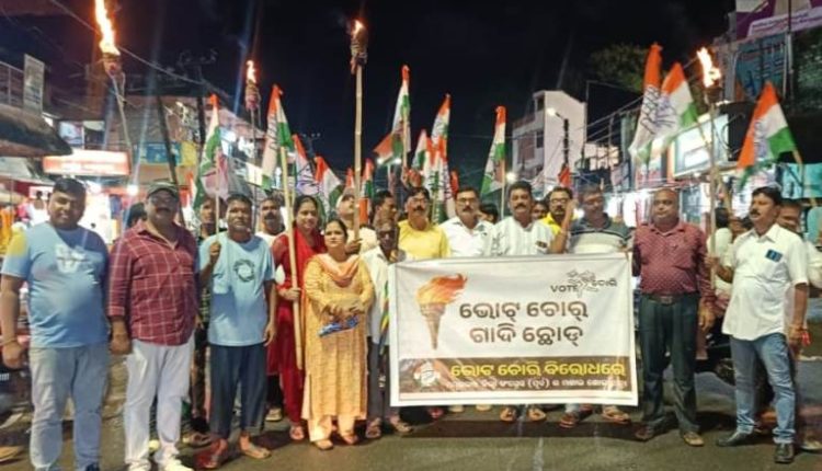 ବାରିପଦା, (ଦେବସ୍ମିତ ଚୌଧୁରୀ) : ଅଖିଳ ଭାରତୀୟ ଜାତୀୟ କଂଗ୍ରେସ କମିଟିର ସଭାପତି ମାଲିକାର୍ଜୁନ ଖଡ଼ଗେ ଓ ପ୍ରଦେଶ କଂଗ୍ରେସ କମିଟିର ସଭାପତି ଭକ୍ତ ଚରଣ ଦାସଙ୍କ ନିର୍ଦ୍ଦେଶ କ୍ରମେ, ଆଜି ମୟୁରଭଞ୍ଜ ଜିଲ୍ଲା ସଂଯୋଜକ(ପୂର୍ବ)ଅରବିନ୍ଦ ଦାସଙ୍କ ନେତୃତ୍ୱରେ, ଏକ ବିଶାଳ ମଶାଲ ଶୋଭାଯାତ୍ରା ସ୍ଥାନୀୟ ମହାରାଜା ପୂର୍ଣ ଚନ୍ଦ୍ର ମହାବିଦ୍ୟାଳୟ ନିକଟରୁ ଆରମ୍ଭ ହୋଇ, “ଭୋଟ ଚୋର ଗାଦି ଛାଡ଼” ନାର ଦେଇ,ସହର ପରୀକ୍ରମା କରିଥଲା । ଆଜିର ଏହି କାର୍ଯ୍ୟକ୍ରମରେ ନିରୋଜ ଦାସ, ଜ୍ୟୋତିପ୍ରକାଶ ରଥ, ଯୋଗେଶ ଅଗ୍ରୱାଲ, ସୁସ୍ମିତା ଘୋସାଲ, ମୋତିପ୍ରକାଶ ଦାସ, ସୁଦିପ ମନ୍ତ୍ରୀ, ଦୀପୁ ଦାସ, ବିଷ୍ଣୁ ସିଂ, ଭବାନି ସିଂ, ଭବାନୀ ସାହୁ, ଠାକୁର ସିଂ, ଏସ. କେ ମୁସ୍ତଫା, ଏସ, କେ ଇକବାଲ, ଫରିଦା ତପଷୁମ, ନିର୍ମଳ ପ୍ରଧାନ ଓ ଛାତ୍ର ଓ ଯୁବଓ ମହିଳା ସଂଗଠନର ଅନେକ କାର୍ଯ୍ୟକର୍ତ୍ତା ପ୍ରମୁଖ ଉପସ୍ଥିତ ଥିଲେ ।
