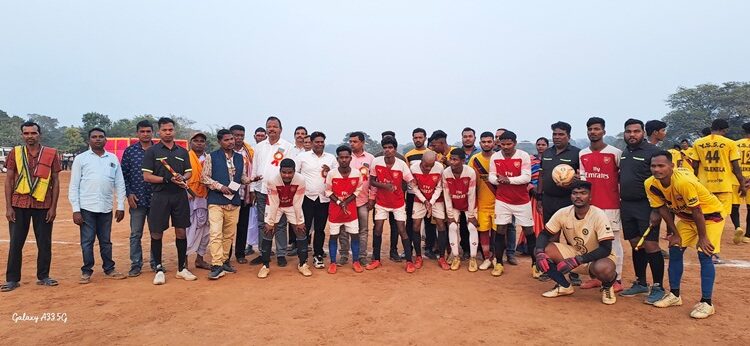 ବଙ୍ଗୋମୁଣ୍ଡା, (ଅର୍ଜୁନ କୁମାର ହଂସ) : ବଲାଙ୍ଗିର ଜିଲ୍ଲା ବଙ୍ଗୋମୁଣ୍ଡା ବ୍ଲକ ବଳଧା ପଞ୍ଚାୟତ ସିନ୍ଧିଭାଡ଼ି ଗାଁର ପଟୁଆ ଡୁଙ୍ଗରି ଖେଳପଡିଆରେ ଚାଲିଥିବା ମା’ ବସ୍ତ୍ରାଣୀ ଫୁଟବଲ ଟୁର୍ଣ୍ଣାମେଣ୍ଟ ଆଜି ତୃତୀୟ ଦିବସରେ ପହଞ୍ଚିଛି । ତୃତୀୟ ଦିବସରେ ମୁଖ୍ୟ ଅତିଥି ଭାବେ ସମାଜସେବୀ ଫାଲଗୁନୀ ପ୍ରଧାନୀ, ସମ୍ମାନିତ ଅତିଥି ଭାବେ ଜିଆର୍ଏସ୍ ସଚିନ ବିଭାର, ପ୍ରଧାନ ଶିକ୍ଷକ ଅର୍ଜୁନ ସାହୁ, ବିଶିଷ୍ଟ ଜ୍ୟୋତିଷ ନରସିଂହ ତାଣ୍ଡି, ନାଏବ ସରପଞ୍ଚଙ୍କ ପ୍ରତିନିଧି ବିକ୍ରମ ପୋଡ଼, ବିଶ୍ୱନାଥ ମିଶ୍ର, ବୈରାଗୀ ଗହୀର, ଡଗ୍ରେଶ୍ଵର ପୁଞ୍ଜି, ନିରନଲାଲ ପୁଞ୍ଜି, ଭୀମରାଜ ବେହେରା, ତ୍ରିନାଥ ନାଗ, କୁନ୍ତଳା ବେହେରା, ପୂର୍ଣ୍ଣମୀ ଛୁରା, ଲଳିତା ପୁଞ୍ଜି, ଉର୍ମିଳା ଠେଲା, ଶୁଭ୍ର ପ୍ରଧାନୀ, କିମ୍ବଦନ୍ତୀ ବେହେରା ପ୍ରମୁଖ ଅତିଥି ଭାବେ ଯୋଗ ଦେଇ ଖେଳାଳିମାନଙ୍କୁ ଉତ୍ସାହିତ କରିଥିଲେ । ଆଜିର ଏହି ତୃତୀୟର ମ୍ୟାଚ୍ରେ ସୁଲେକେଲା ଓ ବଡ଼ଗମଡ଼ା ଦଳ ମଧ୍ୟରେ ଖେଳ ଅନୁଷ୍ଠିତ ହୋଇଥିବା ବେଳେ ବଡ଼ଗମଡ଼ା ଦଳକୁ ୧-୦ ଗୋଲରେ ପରାସ୍ତ କରି ସୁଲେକେଲା ଦଳ ଫାଇନାଲ୍ରେ ପ୍ରବେଶ କରିଛି । ରେଫରୀ ଦୁଷ୍ମନ୍ତ ସାହୁ ଖେଳ ପରିଚାଳନା କରିଥିବା ବେଳେ ଲାଇନରେ ଦୁଷ୍ମନ୍ତ ବେହେରା, ବୁଲୁ ମାଝୀ, ଡିସେମ୍ବର ଭୋଇ ସହଯୋଗ କରିଥିଲେ । ଅଭୟ ବାଗ ଧାରା ବିବରଣୀ ପ୍ରଦାନ କରିଥିଲେ । ଆୟୋଜକ କମିଟିର ସଭାପତି ସଦାନନ୍ଦ ତାଣ୍ଡି, ସମ୍ପାଦକ ଲମ୍ବୋଦର ବେହେରା, କୋଷାଧ୍ୟକ୍ଷ ଚକ୍ରଧର ପୁଞ୍ଜି, ସଦସ୍ୟ କେଶବ ଚନ୍ଦ୍ର ପୁଞ୍ଜି, ଚୁଡାମଣି ପୁଞ୍ଜି, ଚିନ୍ତାମଣି ବେହେରା, ସୁଧୀର କୁମାର ପୁଞ୍ଜି, କିଶୋର ବେହେରା, ଗୋପାଳ ବେହେରା, ପପୁ ବେହେରା, ଖୁସିରାମ ବେହେରା ପ୍ରମୁଖଙ୍କ ସହ ଆୟୋଜକ କମିଟିର ସମସ୍ତ ସଦସ୍ୟମାନେ ସହଯୋଗ କରିଥିଲେ ।