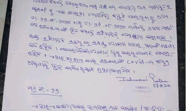 ଲୋଇସିଂହା, (କେପିଏନ୍ଏସ୍) : ଜଣେ କରୋନା ଆକ୍ରାନ୍ତ ଚିହ୍ନଟ ହେବା ପରେ ସଂପୃକ୍ତ ବ୍ଲକ୍ ଅଧୀନସ୍ଥ କୁଶଙ୍ଗ ପଞ୍ଚାୟତ ଅଂଚଳକୁ ୭୨ ଘଂଟା ପାଇଁ ସଟ୍ଡାଉନ୍ କରିଛନ୍ତି ସରପଞ୍ଚ ଯଦୁମଣି ପଧାନ । ତେବେ ସୂଚନା ଅନୁସାରେ ୨୭ ତାରିଖଠାରୁ ୨୯ ତାରିଖ ପର୍ଯ୍ୟନ୍ତ ଏହି ନିର୍ଦ୍ଦେଶନାମା ବଳବତ୍ତର ରହିବ । ଉକ୍ତ ସଟ୍ଡାଉନ୍ ସମୟରେ ଦୋକାନ ବଜାର ତଥା ବ୍ୟାଙ୍କ ସେବା ବନ୍ଦ ରଖିବାକୁ କୁହାଯାଇଥିବା ବେଳେ କେବଳ ଔଷଧ ଦୋକାନ, ଦୁଗ୍ଧ ବିକ୍ରୟ ଦୋକାନ ଖୋଲା ରହିବ । ଏହି ଘୋଷଣାର ଖିଲାପ ହେଲେ କୋଭିଡ-୧୯ ନିୟମ ଅନୁସାରେ ଦୃଢ଼ କାର୍ଯ୍ୟାନୁଷ୍ଠାନ ଗ୍ରହଣ କରାଯିବାକୁ ଦର୍ଶା ଯାଇଛି ।