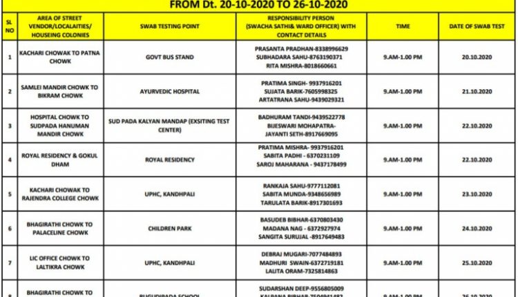ବଲାଙ୍ଗିର ଜିଲ୍ଲା ପ୍ରଶାସନ ପକ୍ଷରୁ କୋଭିଡ-୧୯ ସଂକ୍ରମଣକୁ ରୋକିବାକୁ ଅଭିନବ ପ୍ରୟାସ : ଆସନ୍ତା ୨୦ରୁ ୨୬ ଯାଏଁ ହେବ ସହରରେ ଧୂଆଁଧାର ସ୍ୱାବ୍‌ ଟେଷ୍ଟ