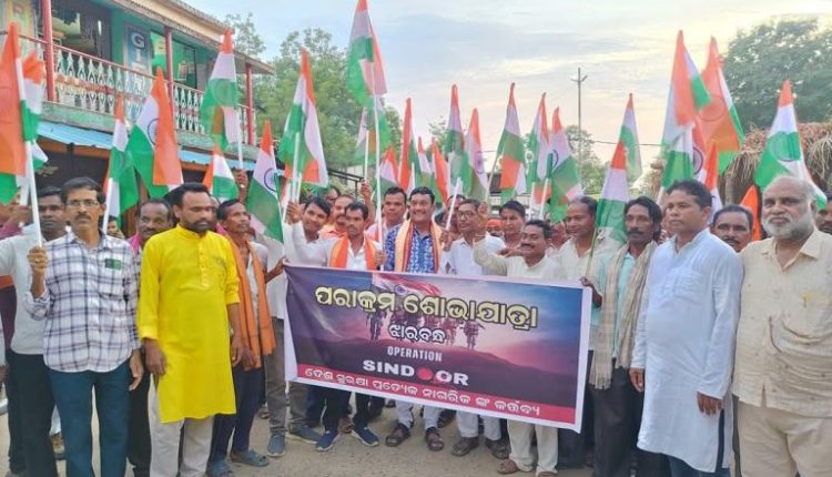 ପଦ୍ମପୁର, (ନିରୋଜ କୁମାର ପାଣୀ) : ଭାରତୀୟ ସୈନ୍ୟମାନଙ୍କ ମନବୋଳକୁ ବଢ଼ାଇବା ପାଇଁ ପାକିସ୍ଥାନୀ ଆତଙ୍କବାଦୀଙ୍କ ବିରୋଧରେ ପ୍ରଧାନମନ୍ତ୍ରୀ ଶ୍ରୀ ମୋଦିଙ୍କ ନିଷ୍ପତ୍ତିରେ ସିନ୍ଦୁର ଅପରେସନ ସଫଳତାର ସହ ଭାରତ ଗୌରବ ଅର୍ଜନ କରିଛି । ଉକ୍ତ ପରାକ୍ରମର ସଫଳତା ପାଇଁ ରବିବାର ଦିନ ଅପରାହ୍ନ ୪ଟାରେ ଝାରବନ୍ଧ ଠାରେ ସାର୍ବଜନୀନ ନିରପେକ୍ଷ ଭାବେ ଗ୍ରାମ କମିଟି, ଗ୍ରାମର ବଣିକ ସଂଘ, ସାମ୍ବାଦିକ ବନ୍ଧୁଗଣ, ଗ୍ଲୋବଲ ସ୍ପୋଟିଙ୍ଗ୍ ଓ ବିଜେପି ଉଭୟ ମଣ୍ଡଳର ଅସଂଖ୍ୟ କାର୍ଯ୍ୟକର୍ତ୍ତାଙ୍କ ଦ୍ୱାରା ତ୍ରିରଙ୍ଗା ଯାତ୍ରା ଗ୍ରାମ ପରିକ୍ରମା କରି ଝାରବନ୍ଧ ଚାନ୍ଦିନୀ ଚୌକଠାରେ ସମାପନ ହୋଇଥିଲା । କାର୍ଯ୍ୟକ୍ରମରେ ବରଗଡ଼ ସାଂସଦ ପ୍ରଦୀପ ପୁରୋହିତ, ଗୋବର୍ଦ୍ଧନ ଭୋଇ ଓ ମାନ୍ୟଗଣ୍ୟ ଭଦ୍ରବ୍ୟକ୍ତି ଯୋଗ ଦେଇଥିଲେ ।