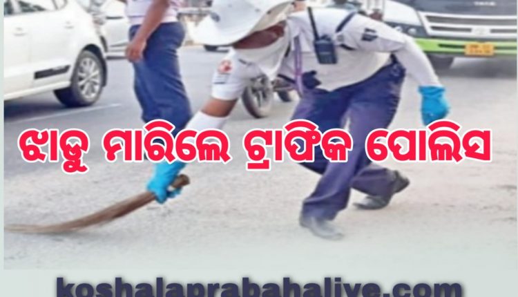 ରାସ୍ତାକୁ ଝାଡୁ ମାରିଲେ ଟ୍ରାଫିକ୍‌ ପୋଲିସ : ସୋସିଆଲ ମିଡିଆରେ ଚର୍ଚ୍ଚା