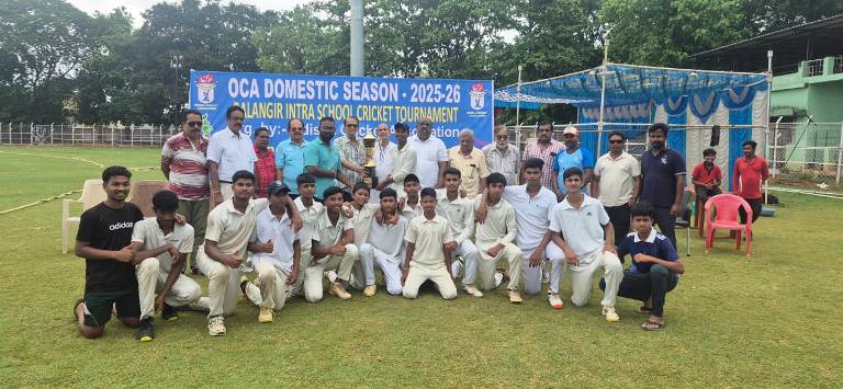 ବଲାଙ୍ଗିର, (କେପିଏନ୍ଏସ୍) : ଓଡ଼ିଶା କ୍ରିକେଟ ଏସୋସିଏସନ ଓ ବଲାଙ୍ଗିର ଜିଲ୍ଲା କ୍ରୀଡା ସଂସଦ ମିଳିତ ଆନୁକଲ୍ୟରେ ଚାଲିଥିବା ଇନ୍ଟ୍ରା ସ୍କୁଲ କ୍ରିକେଟ ଟୁର୍ଣ୍ଣାମେଣ୍ଟ ଉଦ୍ଯାପିତ ହୋଇଯାଇଛି । ଆଜିର ଫାଇନାଲ ମ୍ୟାଚ୍ଟି ରେଡ଼ କମବାଇନ୍ ଦଳ ଓ ବ୍ଲୁ କମବାଇନ୍ ଦଳ ମଧ୍ୟରେ ଅନୁଷ୍ଠିତ ହୋଇଥିଲା । ରେଡ଼ କମବାଇନ୍ ଦଳ ଟସ୍ ଜିଣି ପ୍ରଥମେ ବ୍ୟାଟିଙ୍ଗ୍ କରି ୮ ୱିକେଟ୍ ବିନିମୟରେ ୧୭୬ ରନ୍ ସଂଗ୍ରହ କରିଥିଲେ । ରେଡ଼ କମବାଇନ୍ ଦଳ ତରଫରୁ ଆରିୟନ ଦୋରା ସର୍ବାଧିକ ୫୦ ରନ୍ ଓ ସିଭିକ୍ ସୁନା ଅପରାଜିତ ୪୯ ରନ୍ ସଂଗ୍ରହ କରିଥିଲେ । ବ୍ଲୁ କମ୍ବାଇନ୍ ତରଫରୁ ସଫଳ ଭାବେ ସିୟାନ୍ ପଣ୍ଡା ଓ ଶାଶ୍ୱତ ଠାକୁର ୨ ଗୋଟି ୱିକେଟ୍ ନେଇଥିଲେ । ୧୭୬ ରନ୍ ବିଜୟ ଲକ୍ଷ୍ୟ ପିଛା କରିବାକୁ ଯାଇ ୨୨.୪ ଓଭର୍ରେ ୭ ୱିକେଟ୍ ବିନିମୟରେ ୮୩ ରନ୍ ସଂଗ୍ରହ କରିଥିଲେ । ଏହି ସମୟରେ ବର୍ଷା ହେବାରୁ ଖେଳକୁ ଡ଼ିଏଲ୍ଏସ୍ ମେଥଡ୍ ପ୍ରୟୋଗ କରାଯାଇଥିଲା । ଫଳରେ ଏହି ମ୍ୟାଚ୍ଟିକୁ କଣ୍ଟାବାଞ୍ଜି ଦଳ ୫୮ ରନ୍ରେ ବିଜୟୀ ହୋଇଥିଲା । ବ୍ଲୁ କମ୍ବାଇନ୍ ତରଫରୁ ପ୍ରଜ୍ଞାନ ମିଶ୍ର ସର୍ବାଧିକ ୩୧ ରନ୍ ସଂଗ୍ରହ କରିଥିଲେ । ରେଡ଼୍ କମବାଇନ୍ ଦଳ ତରଫରୁ ସିଭିକ୍ ସୁନା ଓ ଡ଼ିଲେଶ୍ୱର କଠାର ୨ ଗୋଟି ଲେଖାଁଏ ୱିକେଟ୍ ନେଇଥିଲେ । ଆଜିର ଏହି ଫାଇନାଲ ମ୍ୟାଚ୍କୁ ଓସିଏ ଅମ୍ପାୟାର ପୃଥୀରାଜ ମିଶ୍ର ଓ ରାଜେନ୍ଦ୍ର ସେଠ ପରିଚାଳନା କରିଥିବା ବେଳେ ସ୍ୱାଗତ ଶୁଭଙ୍କର ଓ ଜଗପତି ନାଏକ ସ୍କୋରର ଥିଲେ । ଆଜିର ଏହି ଉଦ୍ଯାପନୀ ଉତ୍ସବରେ ଜିଲ୍ଲା କ୍ରୀଡ଼ା ସଂସଦର କାର୍ଯ୍ୟକାରୀ ସଭାପତି ଡ଼. ଶ୍ରୀକର ମିଶ୍ର, ସାଧାରଣ ସଂପାଦକ ହରିନାରାୟଣ ପୂଝାରୀ, ଉପ-ସଭାପତି କୃଷ୍ଣଚନ୍ଦ୍ର ମିଶ୍ର, ଯୁଗ୍ମସଂପାଦକ ଶତୃଘନ ସିିଂହ, କୋଷାଧ୍ୟକ୍ଷ ହେମନ୍ତ କୁମାର ବେହେରା, କ୍ରିକେଟ ସଂପାଦକ ଓମ୍ପ୍ରକାଶ ଚାନ୍ଦ୍, ଏଥ୍ଲେଟିକ୍ ସଂପାଦକ ବିଭୂତିଭୂଷଣ ପଣ୍ଡା, କାଉନସିଲ ସଭ୍ୟ ସୁଧୀର ଚନ୍ଦ୍ର ପଣ୍ଡା ଓ ବିଜୟ ବଂଶଲ ପ୍ରମୂଖ ଉପସ୍ଥିତ ରହି ବିଜେତା ଓ ଉପ-ବିଜେତା ଦଳକୁ ଟ୍ରଫି ପ୍ରଦାନ କରିବା ସହ ଖେଳାଳୀମାନଙ୍କୁ ଉତ୍ସାହିତ କରିଥିଲେ ଏବଂ କ୍ରିକେଟ ସଂପାଦକ ଓମ୍ପ୍ରକାଶ ଚାନ୍ଦ ଧନ୍ୟବାଦ ଅର୍ପଣ କରିଥିଲେ ।