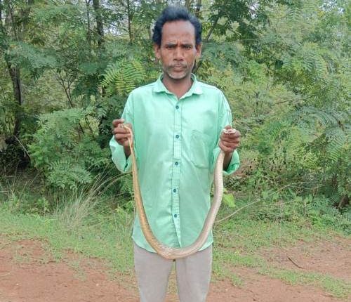 ମୁରିବାହାଲ, (ଦୁର୍ଗାନନ୍ଦ ମହାକୁର) : ମୁରିବାହାଲ ବ୍ଲକ ବଡ଼ସାଇମରା ପଞ୍ଚାୟତ ଖଲିଆପାଲି ଗ୍ରାମର ଗୋବିନ୍ଦ ନାଗଙ୍କ ଘରେ ଏକ ବିଷାକ୍ତ ନାଗସାପ ରହିଥିବା ଘରଲୋକେ ଦେଖିବାକୁ ପାଇଥିଲେ । ସେମାନେ ସଇଁତଲା ବ୍ଲକ ଟିକ୍ରାପଡ଼ା ଗ୍ରାମର ଜଣାଶୁଣା ସାପଧରାଳି ଯୋଗୀ ରଣାଙ୍କୁ ଫୋନ୍ ଯୋଗେ ସୂଚନା ଦେଇଥିଲେ । ଖବର ପାଇ ଶ୍ରୀ ରଣା ଗୋବିନ୍ଦ ନାଗଙ୍କ ଘରୁ ସାପଟିକୁ ଉଦ୍ଧାର କରି ନିକଟସ୍ଥ ଜଙ୍ଗଲରେ ଛାଡିଦେଇଥିଲେ । ସାପଟି ବିଷାକ୍ତ ଗୋଖର ନାଗ ହୋଇଥିବା ବେଳେ ଏହାର ଲମ୍ବ ପ୍ରାୟ ୬ ଫୁଟ ଥିବା ଜଣାପଡିଛି । ସାପଟିକୁ ଧରିବା ନେଇ ଶ୍ରୀ ରଣାଙ୍କୁ ପରିବାର ସହ ଗ୍ରାମବାସୀଙ୍କ ପକ୍ଷରୁ ସାଧାରଣରେ ଉଚ୍ଚ ପ୍ରଶଂସା କରାଯାଇଛି ।