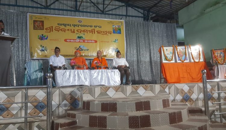 ବଲାଙ୍ଗିର, (ଦେବାଶିଷ ମିଶ୍ର) : ରାଷ୍ଟ୍ରୀୟ ସ୍ୱୟଂ ସେବକ ସଂଘର ଶହେ ବର୍ଷ ପୂର୍ତ୍ତି ଉପଲକ୍ଷେ ରାଷ୍ଟ୍ରୀୟ ସ୍ୱୟଂ ସେବକ ସଂଘ ବଲାଙ୍ଗିର ନଗର ତରଫରୁ ଶତାବ୍ଦୀ ବର୍ଷରେ ହେବାକୁ ଥିବା ୭ଟି କାର୍ଯ୍ୟକ୍ରମ ମଧ୍ୟରୁ ପ୍ରଥମ ଉଦ୍ଘାଟନ କାର୍ଯ୍ୟକ୍ରମ ବିଜୟା ଦଶମୀ ଉତ୍ସବ ସ୍ଥାନୀୟ ଟାଉନ ବାଳିକା ଉଚ୍ଚ ବିଦ୍ୟାଳୟ ଠାରେ ଅନୁଷ୍ଠିତ ହୋଇଯାଇଛି । ପ୍ରଥମେ ସ୍ୱୟଂ ସେବକମାନଙ୍କର ପଥ ସଂଚଳନ ହୋଇଥିଲା । ତାପରେ ବୌଦ୍ଧିକ କାର୍ଯ୍ୟକ୍ରମ ଅନୁଷ୍ଠିତ ହୋଇଥିଲା । ଏହି କାର୍ଯ୍ୟକ୍ରମ ନଗର ସଂଘଚାଳକ ମନୋରଞ୍ଜନ ମିଶ୍ରଙ୍କ ଅଧ୍ୟକ୍ଷତାରେ ପରିଚାଳିତ ହୋଇଥିଲା । ଏହି କାର୍ଯ୍ୟକ୍ରମରେ ବିଭାଗ ସଂଘ ଚାଳକ ଯତିନ୍ଦ୍ର ମୋହନ ସେଠୀଙ୍କ ସହିତ ପୂଜ୍ୟ ସ୍ୱାମୀ ତେଜୋମୟାନନ୍ଦ ସରସ୍ୱତୀ, ସ୍ୱାମୀ ସତ୍ୟବେଦାନନ୍ଦ ସରସ୍ୱତୀ, ସ୍ୱାମୀ ପରମାନନ୍ଦ ସରସ୍ୱତୀ ଉପସ୍ଥିତ ଥିଲେ । ରାଷ୍ଟ୍ରୀୟ ସ୍ୱୟଂ ସେବକ ସଂଘ ଓଡିଶା ପ୍ରାନ୍ତ ସହ କାର୍ଯ୍ୟବାହ ହରିଶ୍ଚନ୍ଦ୍ର ପରିଡା ମାର୍ଗଦର୍ଶନ କରିଥିଲେ । ଏହି ଅବସରରେ ସେ ସ୍ୱୟଂ ସେବକମାନଙ୍କୁ ଉତ୍ସାହିତ କରିବା ସହ ସଂଘ କାର୍ଯ୍ୟକୁ ଗତି ଦେବା ପାଇଁ ପ୍ରେରଣା ଦେଇଥିଲେ । କାର୍ଯ୍ୟକ୍ରମରେ ଓଡିଶା ସରକାରଙ୍କର ସ୍ୱାସ୍ଥ୍ୟ ଏବଂ ପରିବାର କଲ୍ୟାଣ ବିଭାଗ ଏବଂ ବୈଦ୍ୟୁତିକ ଏବଂ ସୂଚନା ବିଭାଗର ମନ୍ତ୍ରୀ ଡା. ମୁକେଶ ମହାଲିଙ୍ଗ, ସଂଘର ପ୍ରାନ୍ତୀୟ କାର୍ଯ୍ୟକର୍ତ୍ତା ପ୍ରଣବ କୁମାର ନାୟକ, ସ୍ୱପ୍ନେଶ୍ୱର ମହାକୁଡ ଏବଂ କେଶବ ପଟେଲ, ବିଭାଗ ସ୍ତରୀୟ କାର୍ଯ୍ୟକର୍ତ୍ତା ସୁରେନ୍ଦ୍ର କୁମାର ସେଠ, ଆଶିଷ ମଣ୍ଡଳ, ଜିଲ୍ଲା ସ୍ତରୀୟ କାର୍ଯ୍ୟକର୍ତ୍ତା ଆଲୋକ ପଟେଲ, ସୁଶାନ୍ତ କୁମାର ନାୟକ, ଦୟାନିଧି କରଣ, ପ୍ରକାଶ ତରିଆ ଏବଂ ନଗରସ୍ତରୀୟ କାର୍ଯ୍ୟକର୍ତ୍ତା ତଥା ବିବିଧ କ୍ଷେତ୍ରର କାର୍ଯ୍ୟକର୍ତ୍ତାମାନେ ଉପସ୍ଥିତ ଥିଲେ । ବଲାଙ୍ଗିର ନଗରର ବିଶିଷ୍ଟ ସଜ୍ଜନ ମଣ୍ଡଳି ଏବଂ ମାତୃଶକ୍ତି ଉପସ୍ଥିତ ରହି କାର୍ଯ୍ୟକ୍ରମକୁ ସଫଳ ମଣ୍ଡିତ କରିଥିଲେ ।