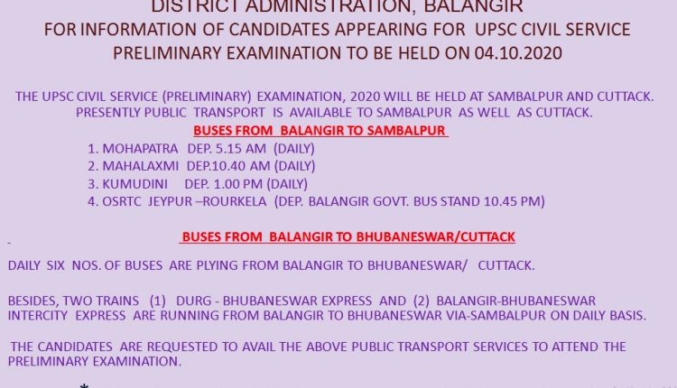 ବଲାଙ୍ଗିର, (କେପିଏନ୍ଏସ୍) : ବଲାଙ୍ଗିର ଜିଲ୍ଲା ପ୍ରଶାସନ ପକ୍ଷରୁ ୟୁପିଏସ୍ସି ସିଭିଲ୍ ସର୍ଭିସ୍(ପ୍ରାଥମିକ) ପ୍ରାର୍ଥୀଙ୍କ ପାଇଁ ଜରୁରୀ ସୂଚନା ଦିଆଯାଇଛି । ତେବେ ଆସନ୍ତା ୪ ତାରିଖ ଦିନ ଅନୁଷ୍ଠିତ ହେବାକୁ ଥିବା ଏହି ପ୍ରାଥମିକ ପରୀକ୍ଷା ସମ୍ବଲପୁର ଏବଂ କଟକରେ ସେଂଟର ହୋଇଥବବା ବେଳେ ବର୍ତ୍ତମାନ ସମ୍ବଲପୁର ଏବଂ କଟକ ଯିବା ପାଇଁ ଗମନାଗମନର ସୁବିଧା ରହିଛି । ବଲାଙ୍ଗିରରୁ ସମ୍ବଲପୁର ଯାଉଛି ମହାପାତ୍ର ବସ୍ ପ୍ରତ୍ୟହ ୫ଟା ୧୫ ଭୋର୍ ସକାଳୁ । ମହାଲକ୍ଷ୍ମୀ ବସ୍ ପୂର୍ବାହ୍ନ ୧୦ଟା୪୦ରେ ବଲାଙ୍ଗିର ଛାଡ଼ୁଛି । ସେହିଭଳି କୁମୁଦିନୀ ବସ୍ ପ୍ରତ୍ୟହ ମଧ୍ୟାହ୍ନ ୧ଟାରେ ବଲାଙ୍ଗିରରୁ ଛାଡ଼ୁଥିବା ବେଳେ ଓଏସ୍ଆର୍ଟିସି ଜୟପୁର-ରାଉରକେଲା ବସ୍ ରାତି ୧୦ଟା ୪୫.ରେ ବଲାଙ୍ଗିରରୁ ଯାଉଛି । ସେହିଭଳି ବଲାଙ୍ଗିରରୁ ପ୍ରତ୍ୟହ ୬ଟି ବସ୍ ଭୁବନେଶ୍ୱର କଟକ ଯାଉଥିବା ସୂଚନାରେ କୁହାଯାଇଛି । ଏହାବାଦ୍ ଦୁଇଟି ଟ୍ରେନ୍ ଦୁର୍ଗ-ଭୁବନେଶ୍ୱର ଏକ୍ସପ୍ରେସ୍ ଏବଂ ବଲାଙ୍ଗିର-ଭୁବନେଶ୍ୱର ଇଣ୍ଟରସିଟି ଏକ୍ସପ୍ରେସ ପ୍ରତ୍ୟହ ଭାୟା ସମ୍ବଲପୁର ହୋଇ ଯିବା ଆସିବା କରୁଛି । ତେବେ ପରୀକ୍ଷାର୍ଥୀମାନଙ୍କୁ ପରୀକ୍ଷାରେ ଯୋଗଦେବା ପାଇଁ ଉପରୋକ୍ତ ସୁବିଧା ଗ୍ରହଣ କରିବା ନିମନ୍ତେ ଜିଲ୍ଲା ପ୍ରଶାସନ ପକ୍ଷରୁ କୁହାଯାଇଛି ।